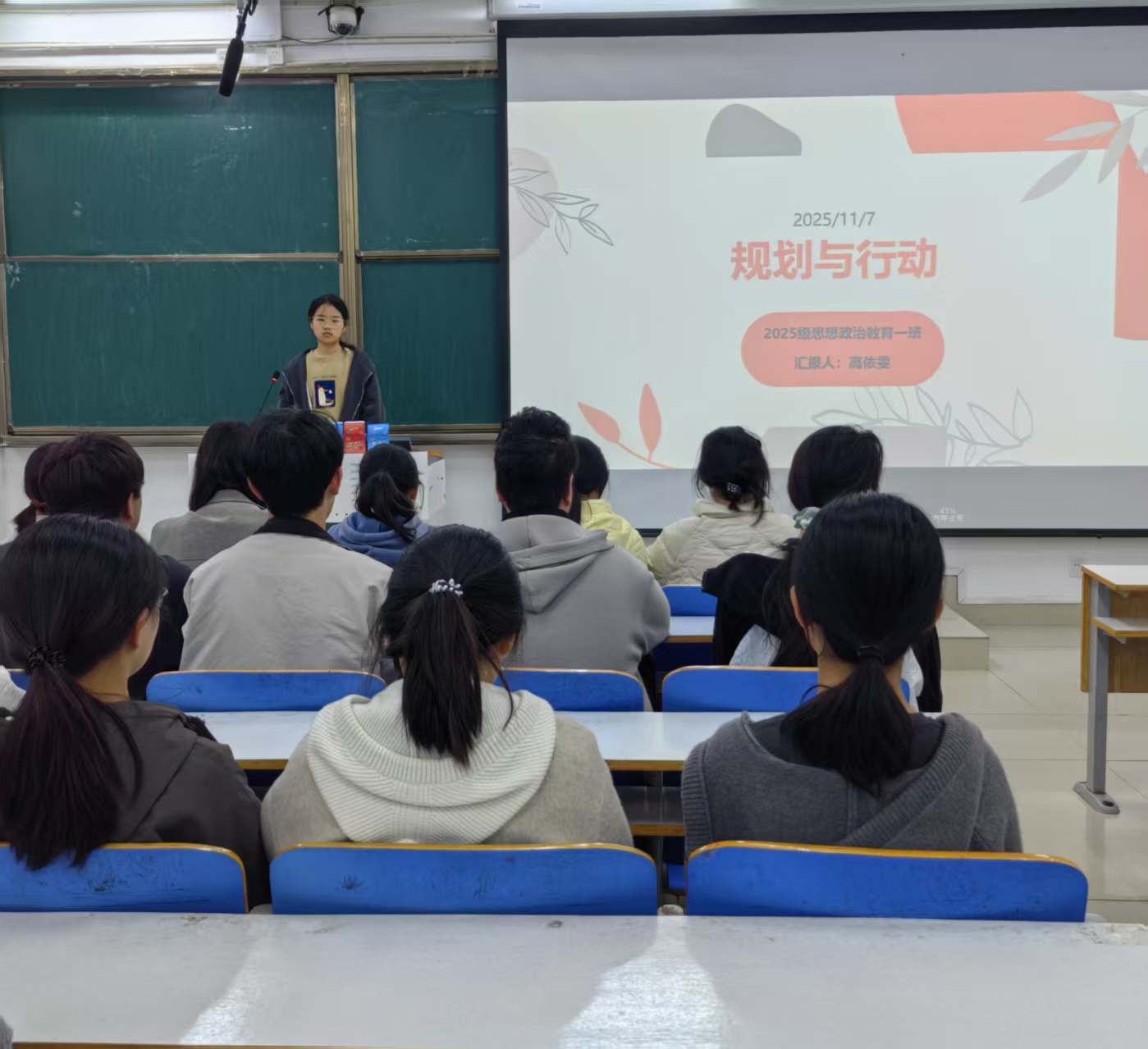 为引导同学们明晰学习方向、掌握科学规划方法,11月7日上午,小说狂人 2025级思想政治教育一班在社科楼514开展“规划筑根基,行动破迷茫”主题班会,本次活动由班长高依雯主持,班级全体同学参加。