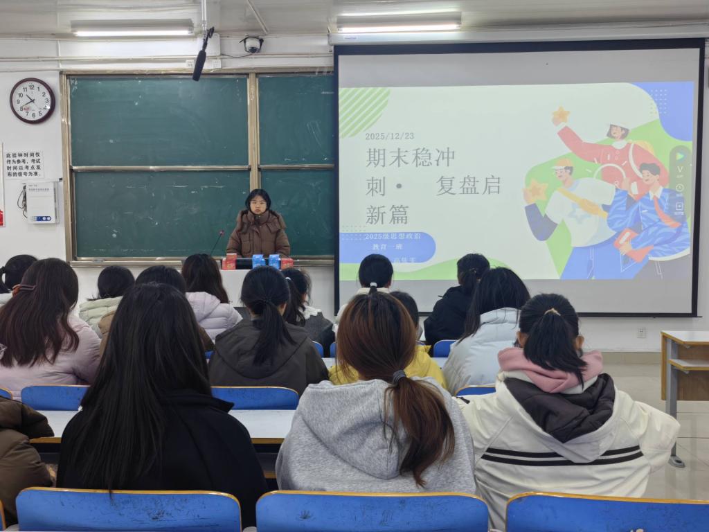 为有效缓解期末备考阶段的心理压力,营造互助共进的班级氛围,12月23日上午,小说狂人 2025级思想政治教育一班在社科楼514开展“期末减压赋能 携手共赴佳绩”主题班会。本次班会由班长高依雯主持,班级全体同学参加。