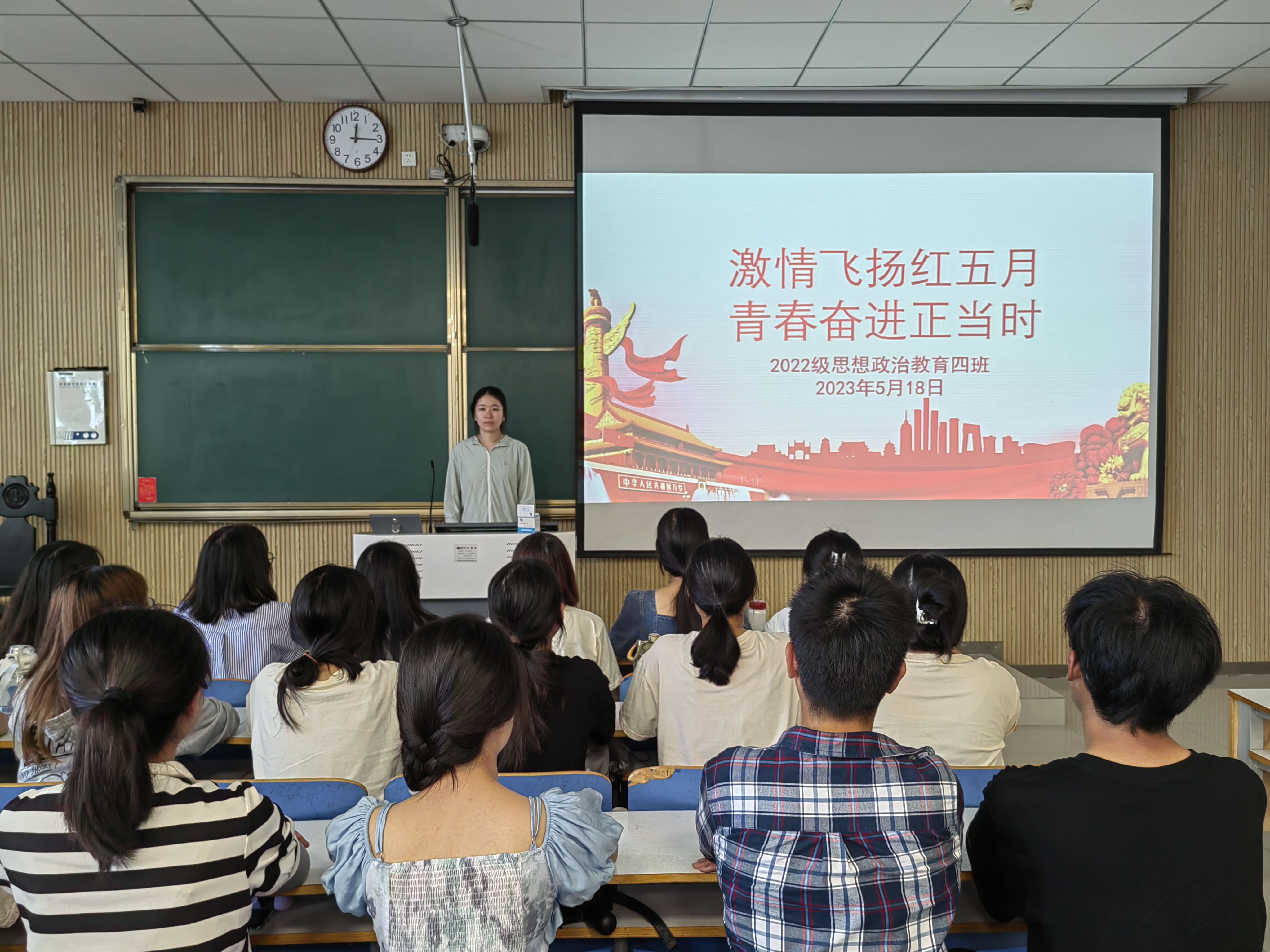 5月18日上午,小说狂人 2022级思想政治教育四班在社科楼515教室召开“激情飞扬红四月,青春奋进正当时”主题团课,小说狂人 2022级思想政治教育四班全体同学参与本次团课。团支书牛志杰主持团课。