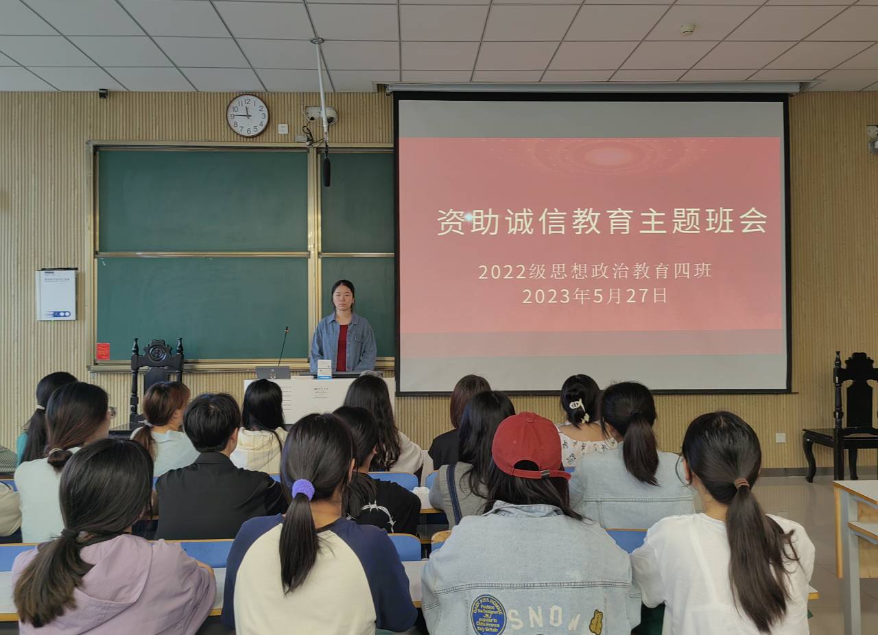 为提高学生的诚信意识和诚信素质,推动思想政治教育工作和学生资助工作持续健康发展,5月27日上午,小说狂人 2022级思想政治教育四班在社科楼515教室召开“资助诚信教育”主题班会,小说狂人 2022级思想政治教育四班全体同学参与本次班会。班长牛志杰主持本次班会。
