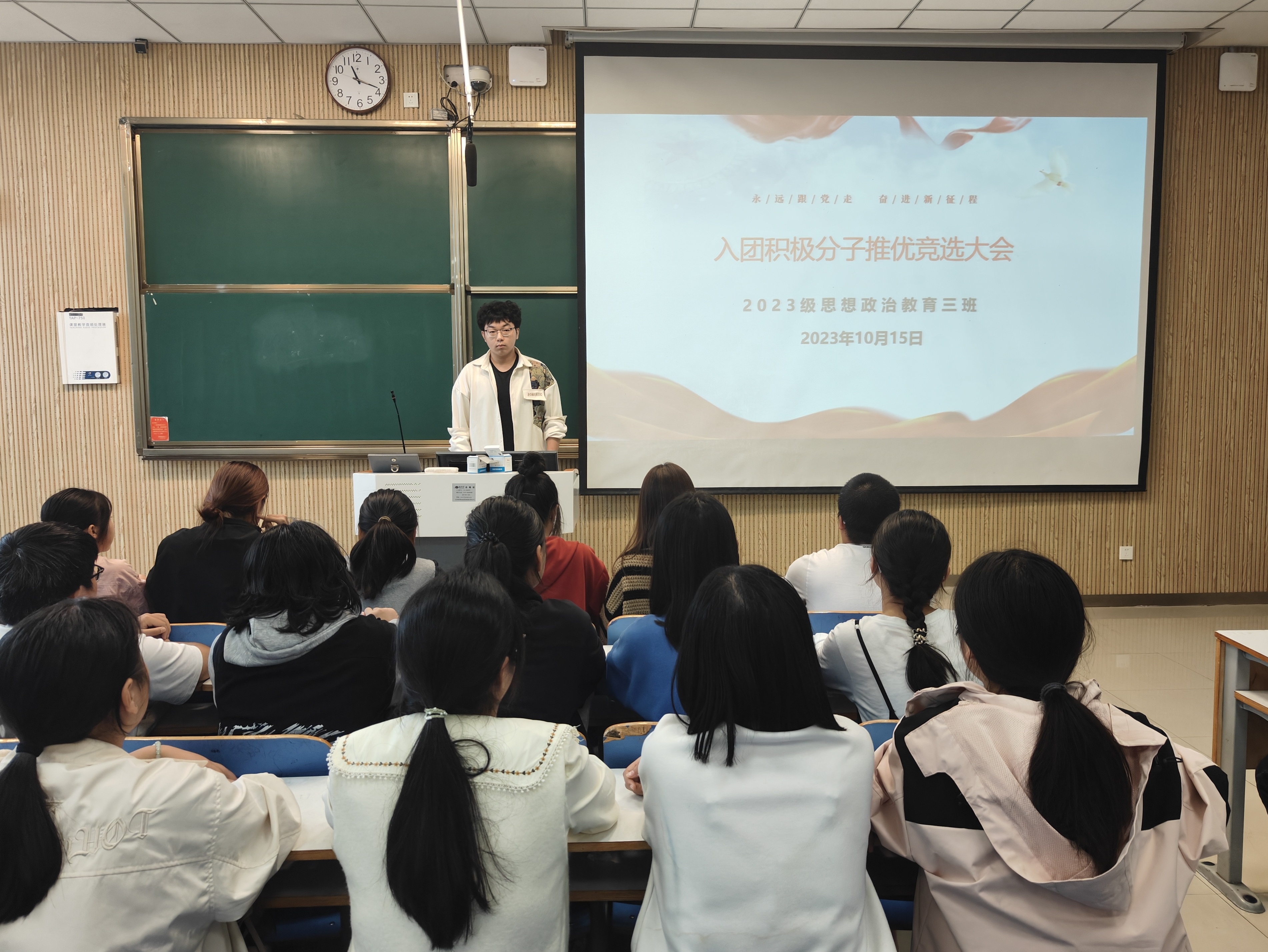 为加强团的组织建设,激励广大青年奋进新征程,10月15日下午,小说狂人 2023级思想政治教育三班在社科楼515教室举行团员积极分子推选班会。小说狂人 2023级思想政治教育三班全体成员共同参加此次班会,班会由团支书郝瀚主持。
