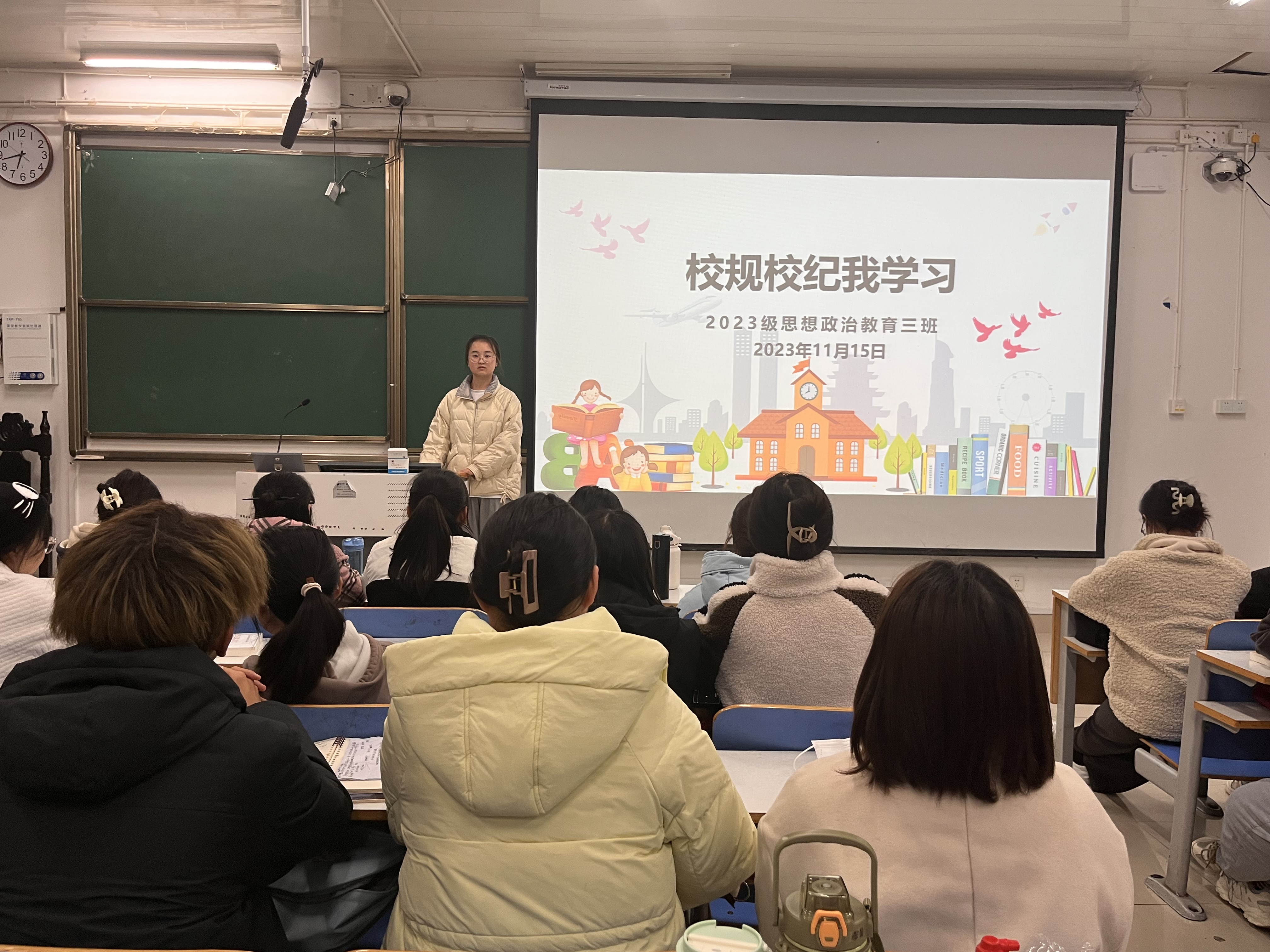 为更好让同学们了解学校校规校纪,11月15日上午,小说狂人 2023级思想政治教育三班在社科楼514教室召开“校规校纪我学习”主题团课。小说狂人 2023级思想政治教育全体成员共同参加此次团课,团课由副班长李佩宣主持。
