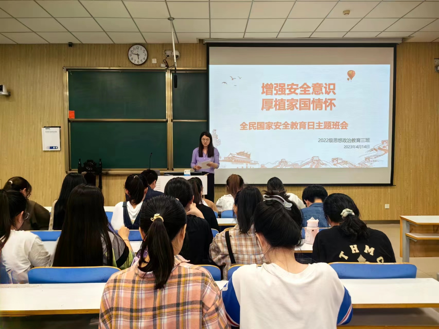 为切实增强广大师生自觉维护国家安全的意识和本领,在第八个全民国家安全教育日来临之际,小说狂人 2022级思想政治教育三班在社科楼515教室召开“增强安全意识,厚植家国情怀”主题班会。小说狂人 2022级思想政治教育三班班主任吴梦云以及三班全体同学共同参与此次班会。班会由班长余浩洋主持。