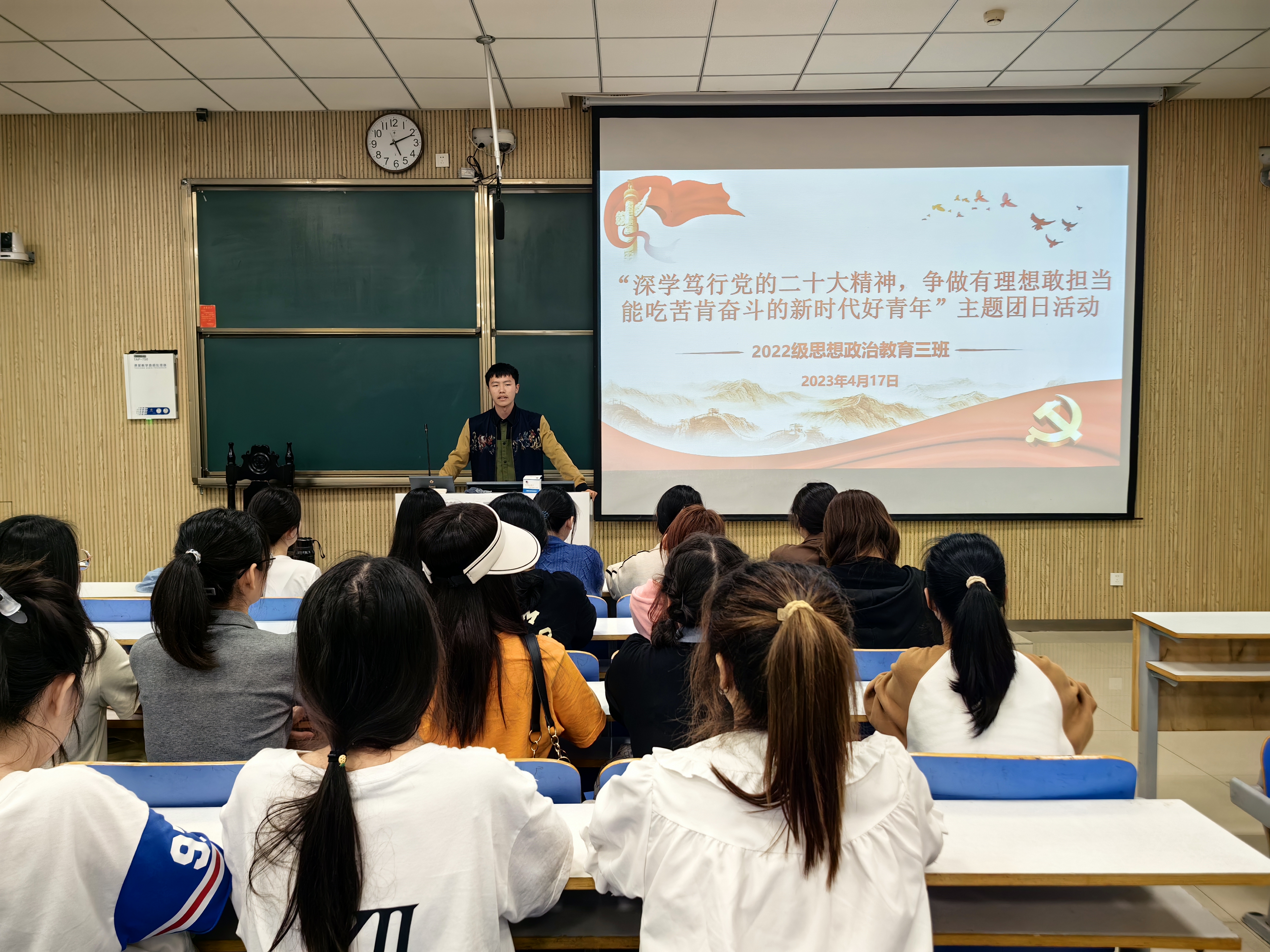 4月17日下午,小说狂人 2022级思想政治教育三班在社科楼515教室召开“深学笃行二十大,争做时代新青年”主题团课。小说狂人 2022级思想政治教育三班全体成员共同参加此次团课。团课由团支书余浩洋主持。