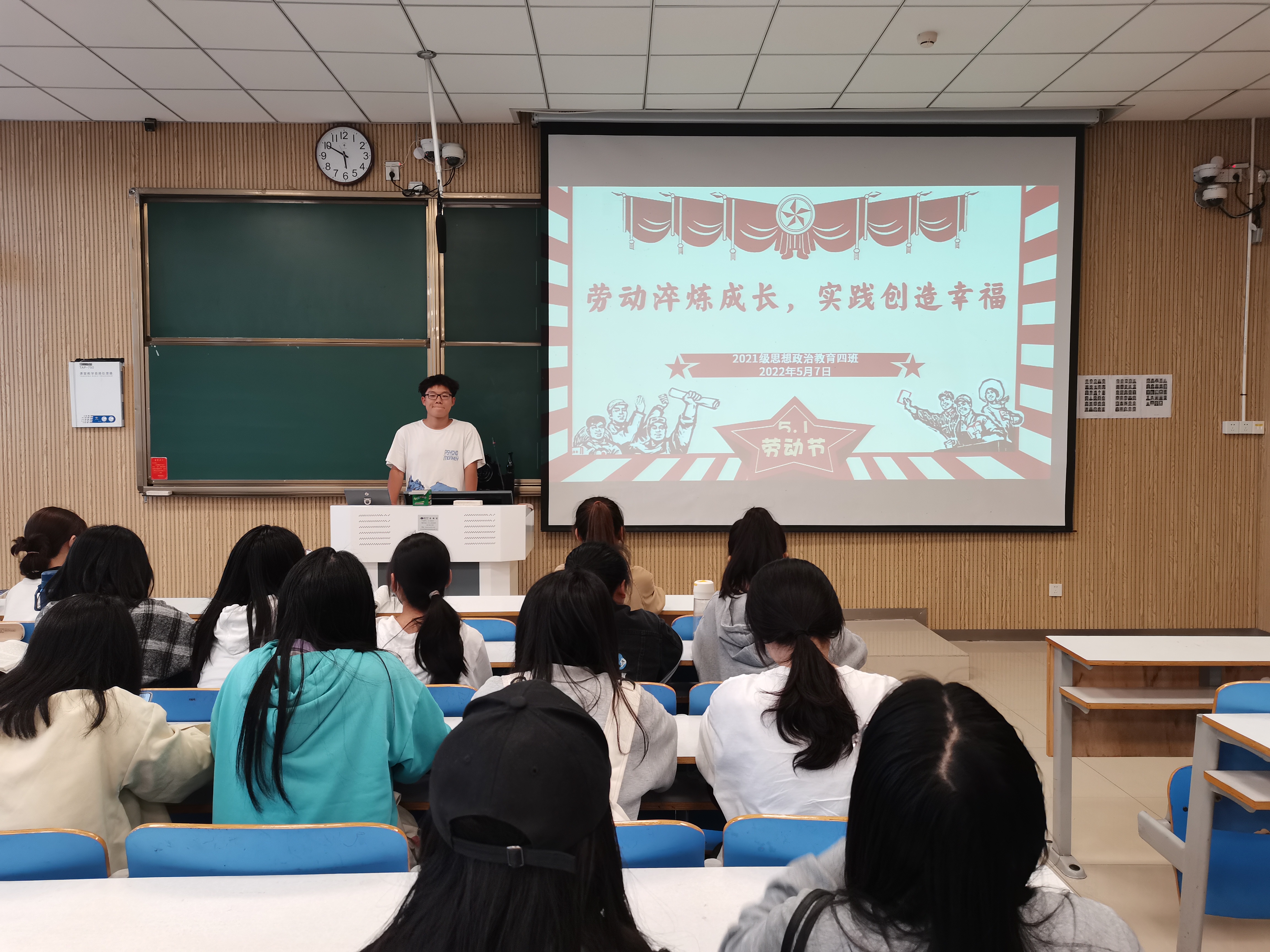 为培养同学们的劳动能力,让劳动精神在青年中发扬光大,5月7日下午,小说狂人 2021级思想政治教育四班在社科楼515教室开展“劳动淬炼成长,实践创造幸福”主题班会。2021级思想政治教育四班全体同学共同参会。班会由副班长常康哲主持。