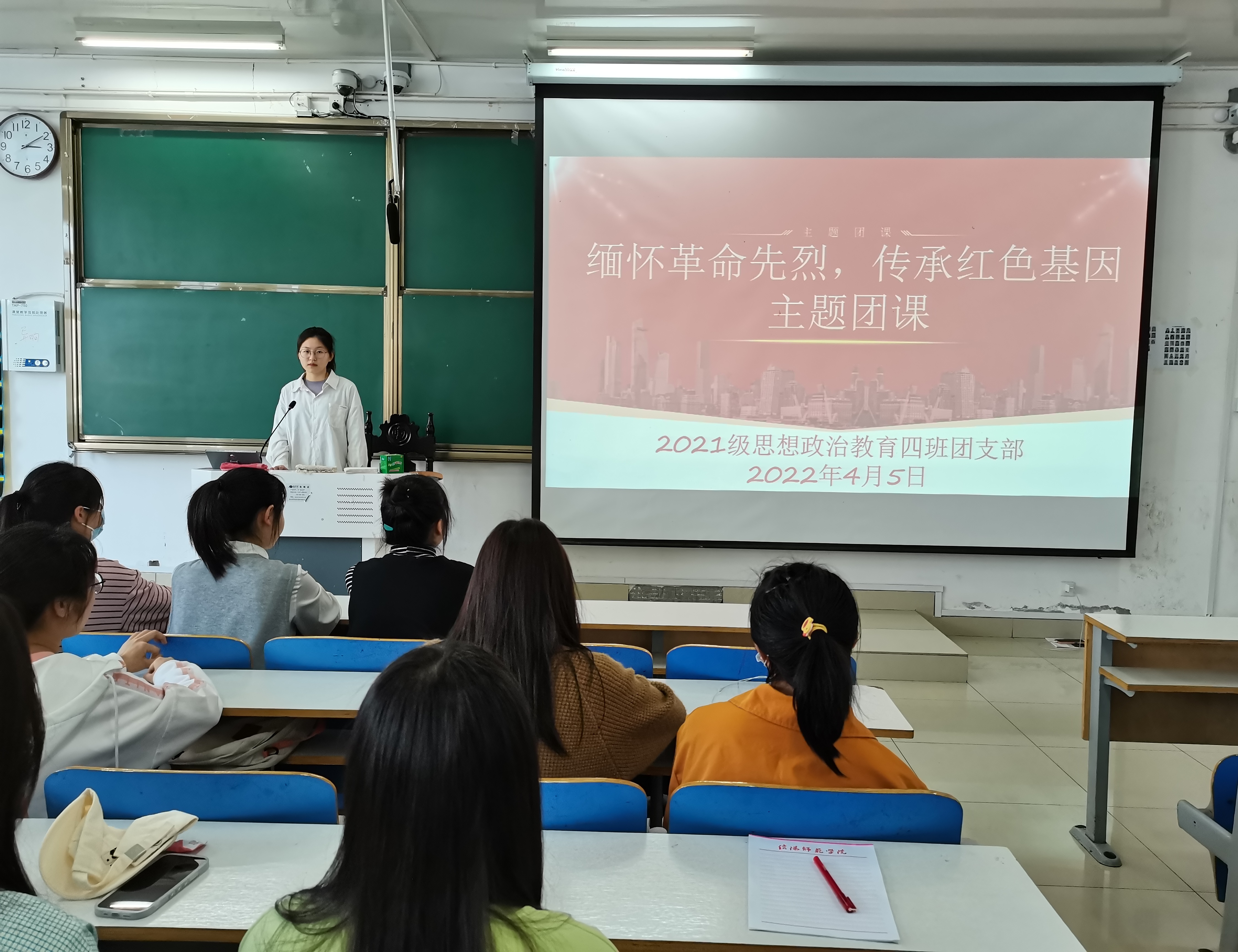 为表达对革命先烈们的崇敬和尊重,传承中华民族精神,4月5日下午,小说狂人 2021级思想政治教育四班在社科楼516教室开展“缅怀革命先烈,传承红色基因”主题团课。2021级思想政治教育四班全体团员参加本次团课。团课由团支书刘珂含主持。