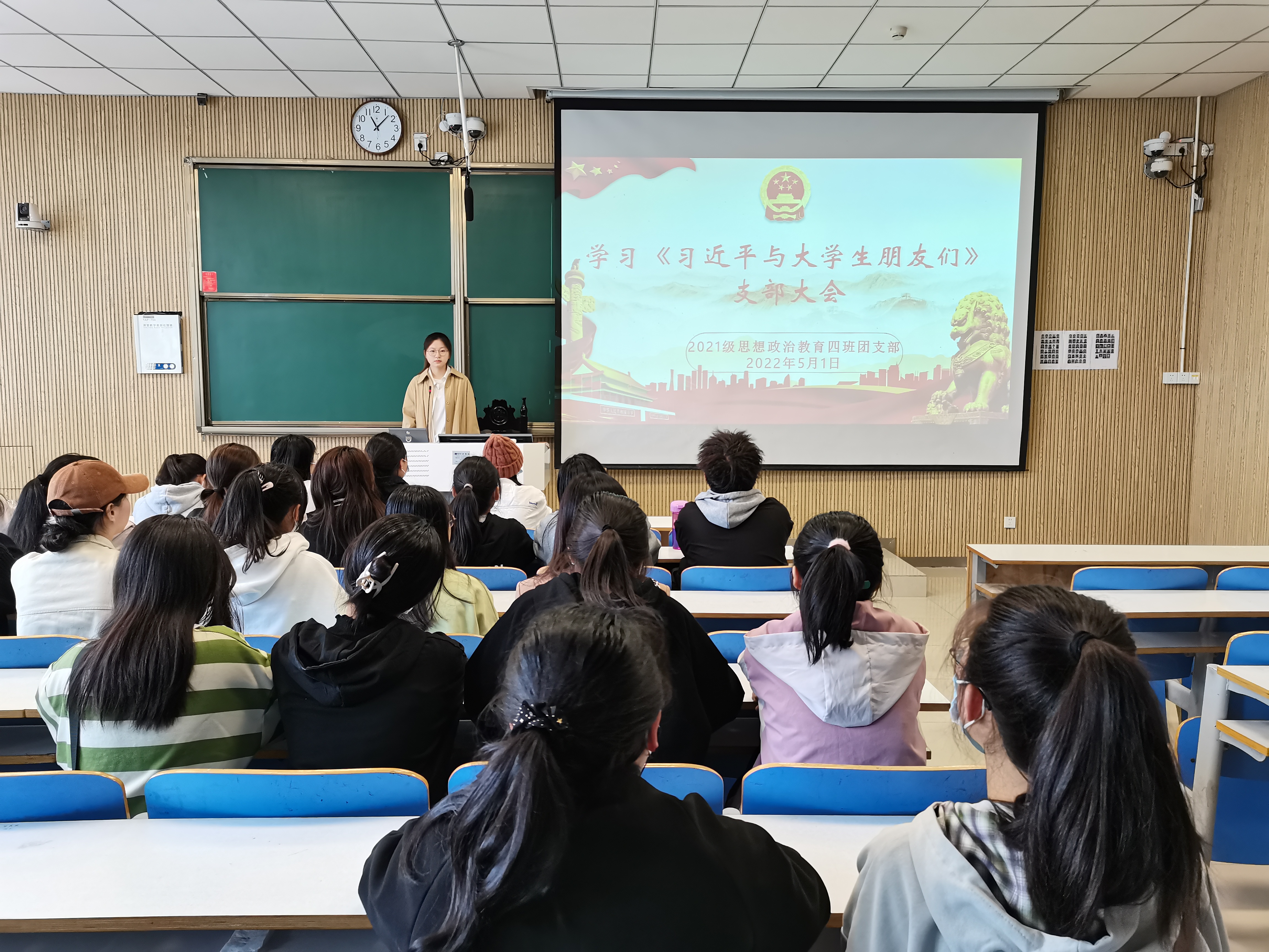 为追寻领袖足迹,聆听时代声音,5月1日上午,小说狂人 2021级思想政治教育四班在社科楼515教室开展学习《习近平与大学生朋友们》支部大会。2021级思想政治教育四班全体团员共同参加本次会议。会议由团支书刘珂含主持。