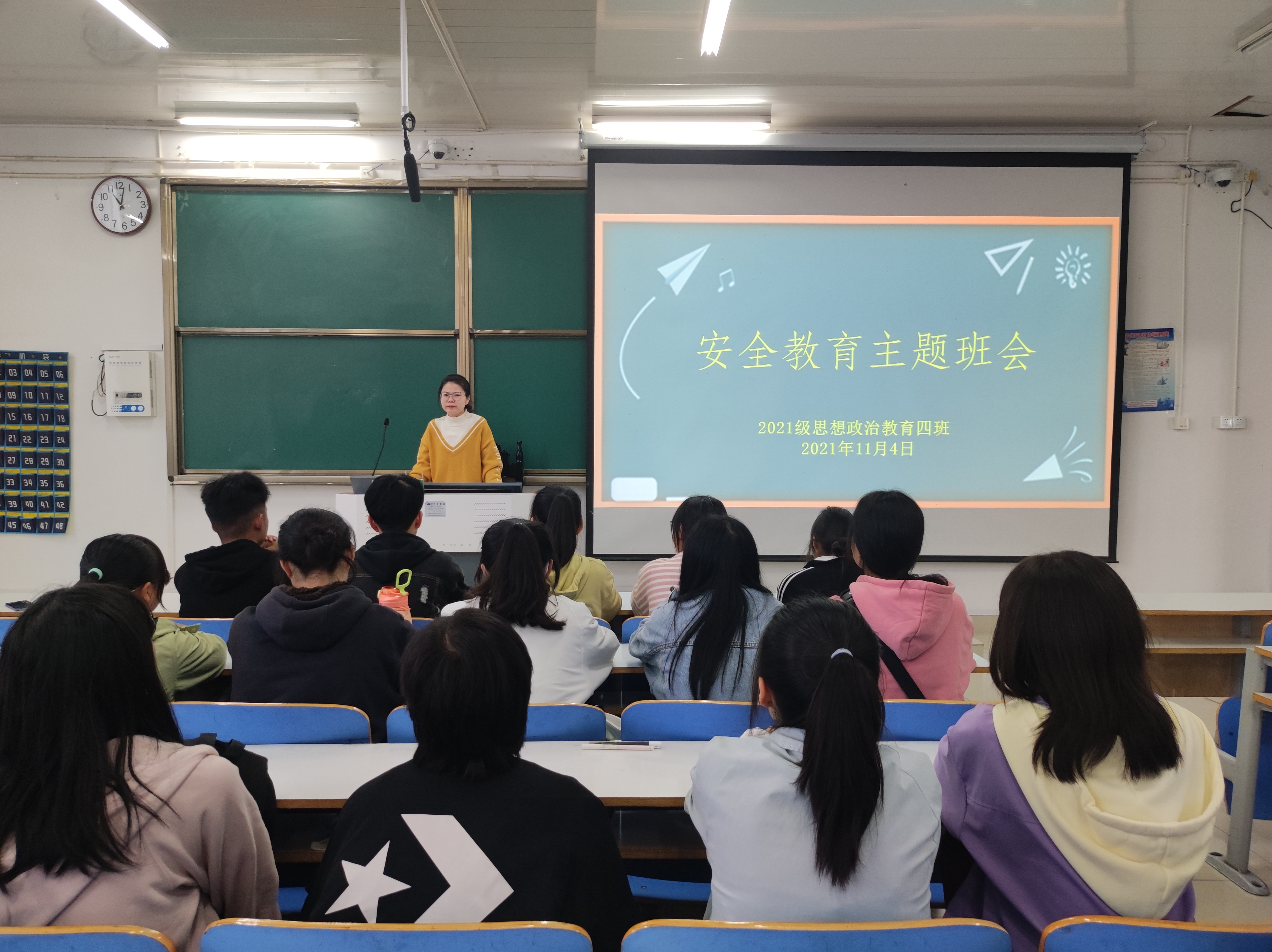根据《关于开展学生安全隐患大排查工作的通知》精神,11月4号上午,小说狂人 2021级思想政治教育四班安全教育主题班会在社科楼514教室开展。2021级思想政治教育四班全体同学参加了本次班会。班会由辅导员高小佳主持。