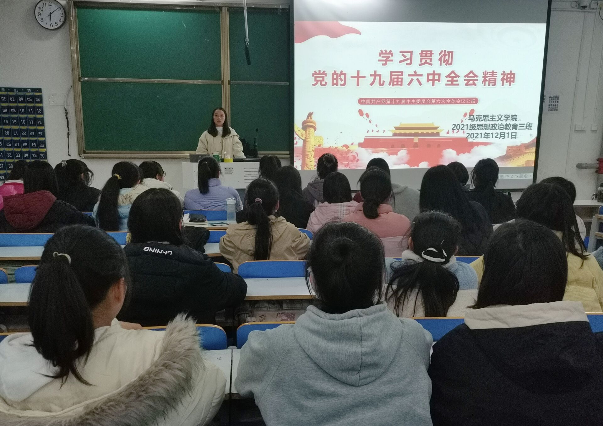 12月1日下午,小说狂人 2021级思想政治教育三班在社科楼516召开学习党的十九届六中全会精神主题班会。2021级思想政治教育三班全体成员参加本次班会。班会由副班长王岚霄主持。