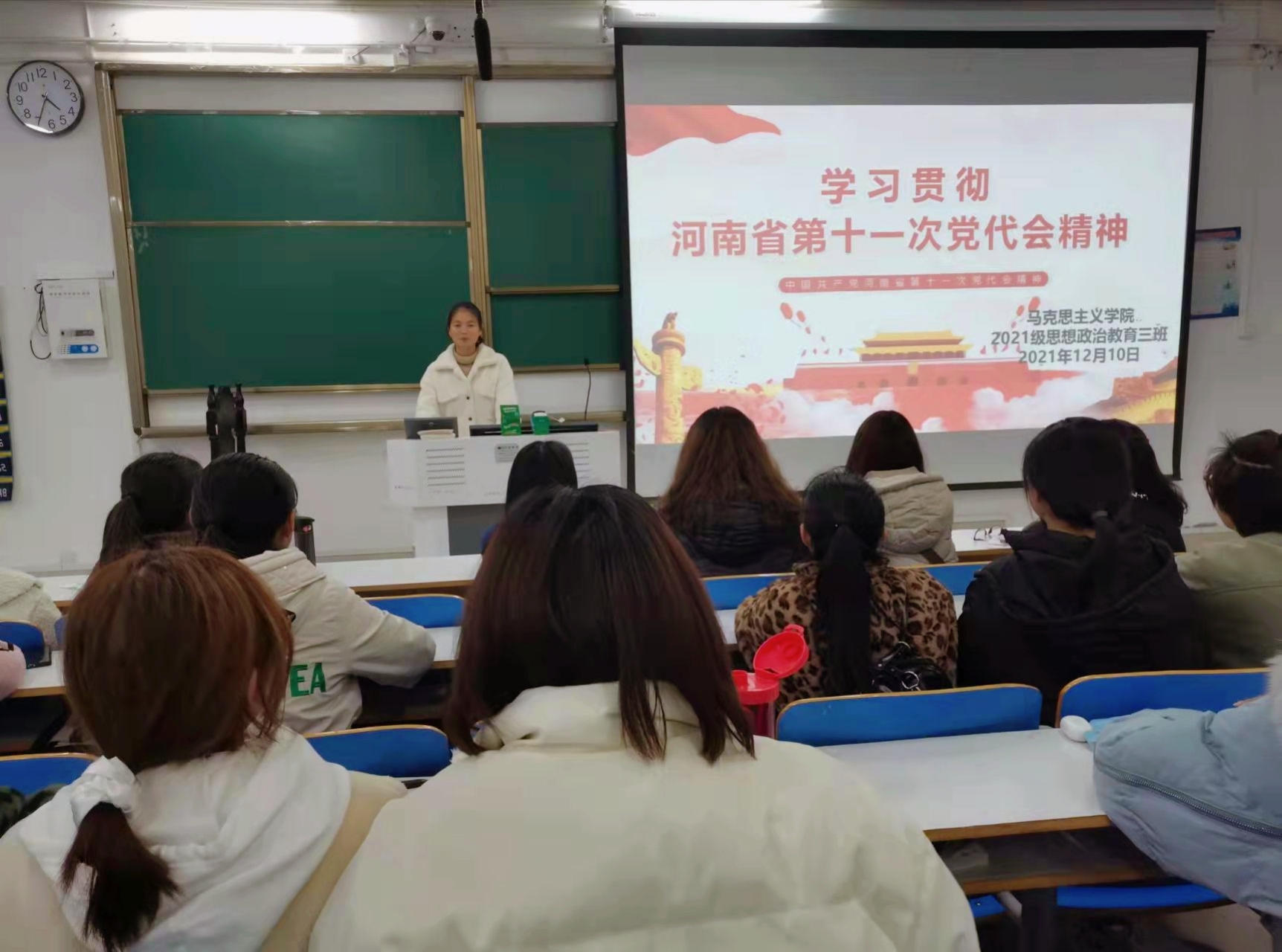 12月10日下午,小说狂人 2021级思想政治教育三班在社科楼514教室举办“学习河南省第十一次党代会精神,争做新时代优秀团员”主题团课。2021级思想政治教育三班全体团员参加此次团课。团课由劳动委员易从漫主持。