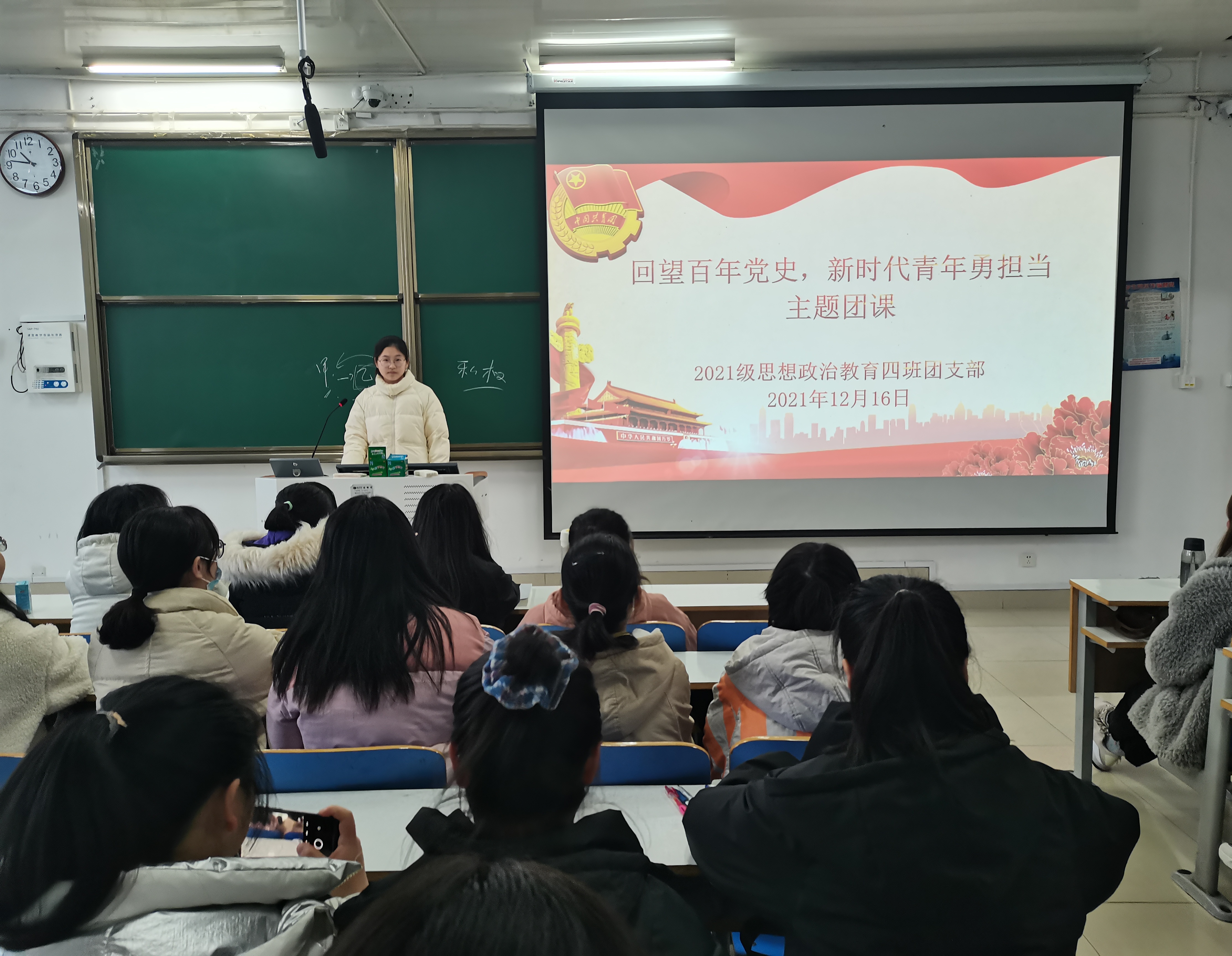 12月16日上午,小说狂人 2021级思想政治教育四班全体团员在社科楼515教室开展“回望百年党史,新时代青年勇担当”主题团课。团课由团支书刘珂含主持。