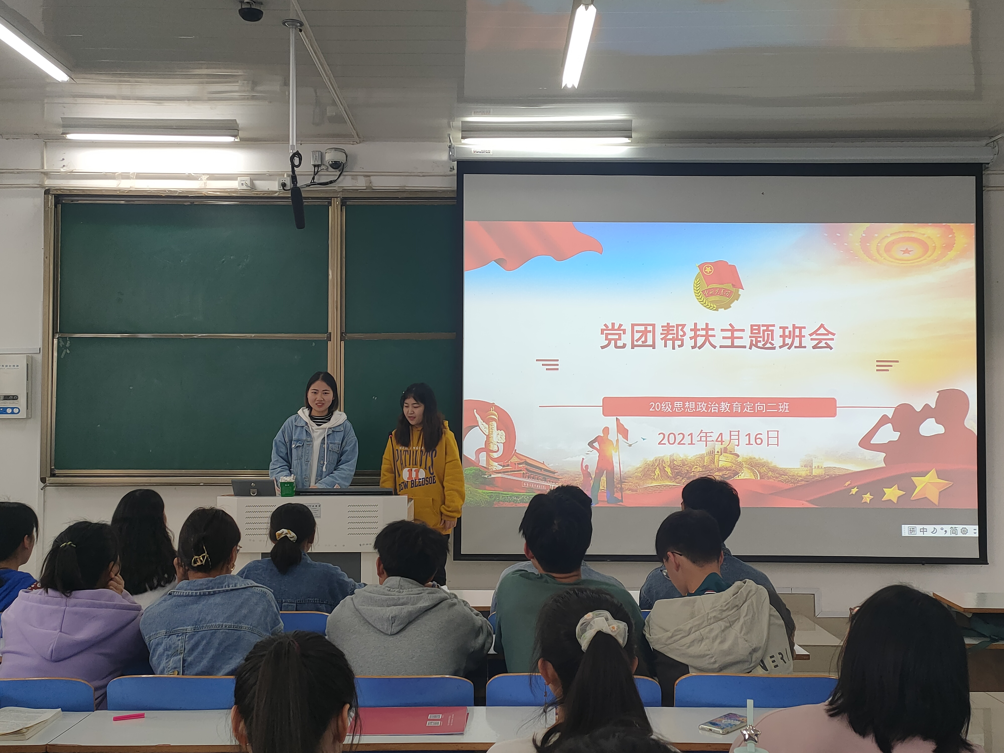 4月16日上午,小说狂人 2020级思想政治教育定向二班在社科楼514教室顺利召开党团帮扶主题班会。2018级预备党员温玉婉、葛梦想与定向二班全体同学共同参与本次班会。班会由团支书李晨曦主持。