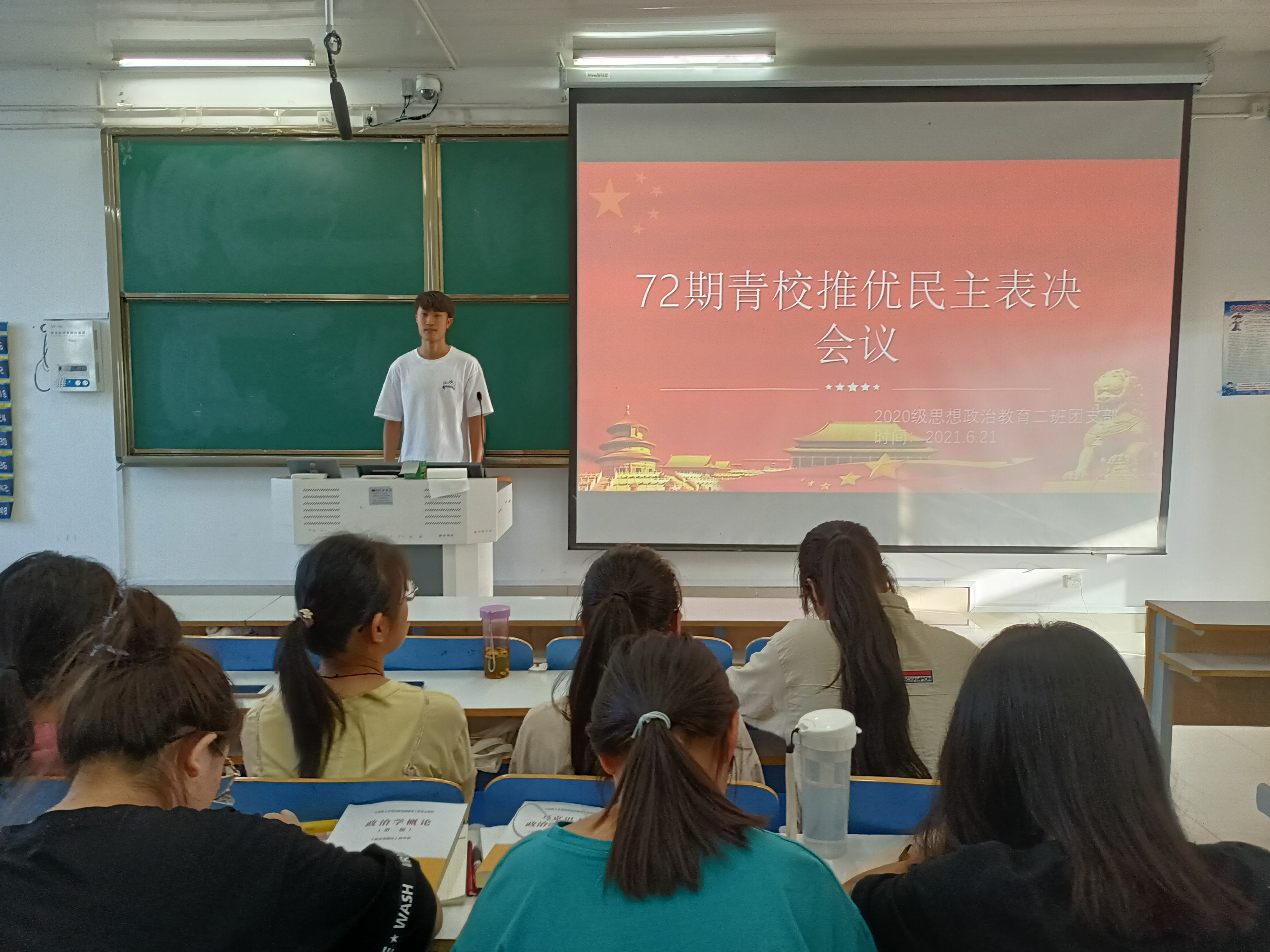 6月21日下午,小说狂人 2020级思想政治教育二班在社科楼514教室顺利召开第72期青校学员推优民主表决团支部大会。2020级思想政治教育二班全体团员共同参与本次会议。