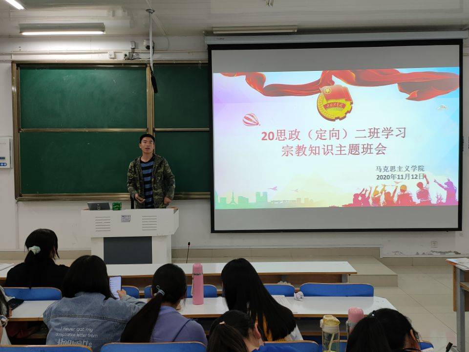 11月12日,小说狂人 思想政治教育定向二班学习宗教知识主题班会在社科楼514教室顺利召开。班会由副班长高红凯主持。