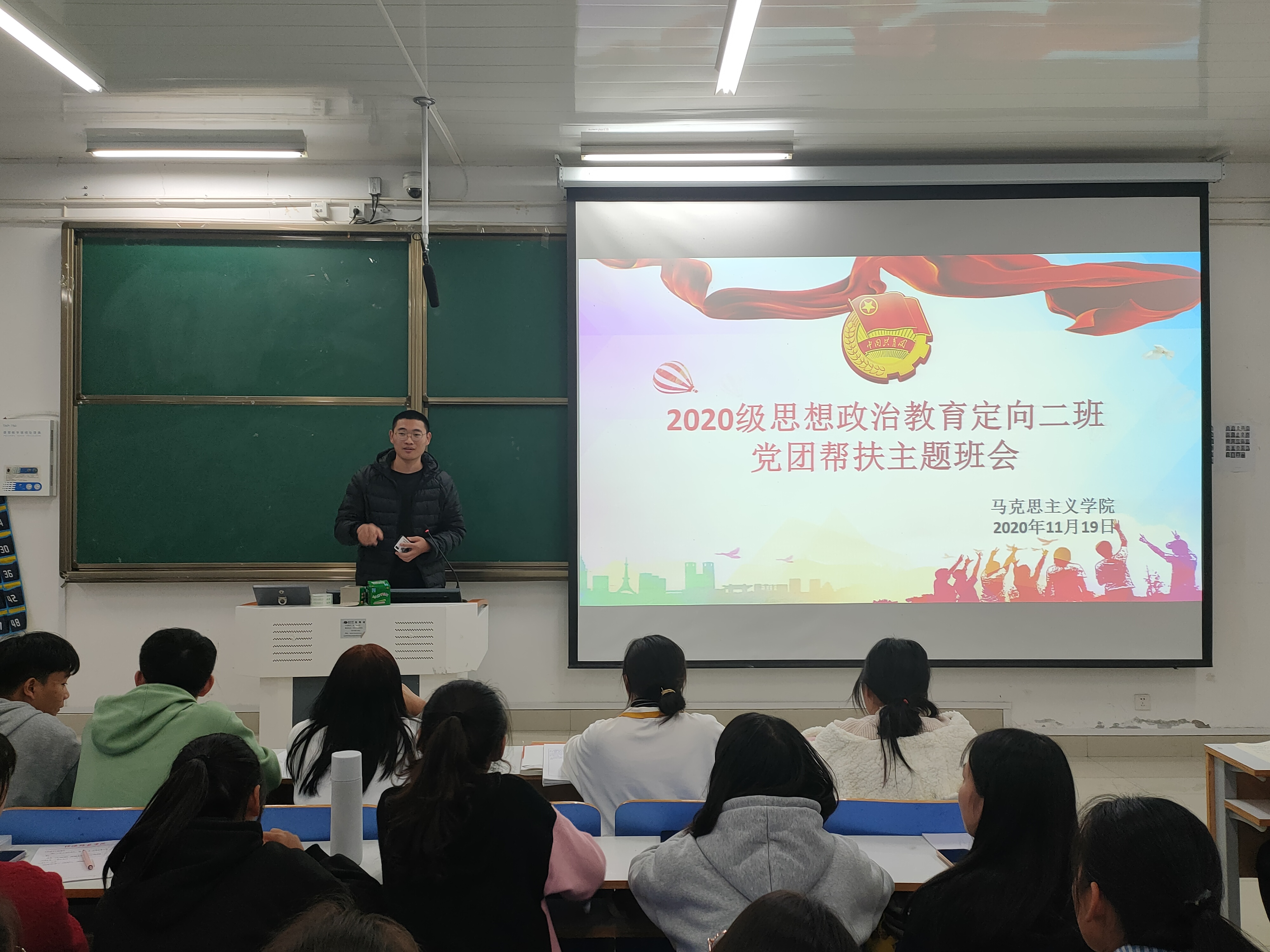 11月19日,小说狂人 2020级思想政治教育定向二班党团帮扶主题班会在社科楼516教室顺利召开。2018级预备党员代表杨康、张甜甜与思政定向二班全体同学共同参与本次班会。班会由团支书李晨曦主持。