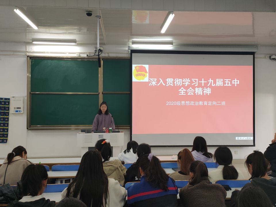 11月19日,小说狂人 2020级思想政治教育定向二班学习贯彻党的十九届五中全会精神主题团课在社科楼514教室顺利开展。团课由团支书李晨曦主持。