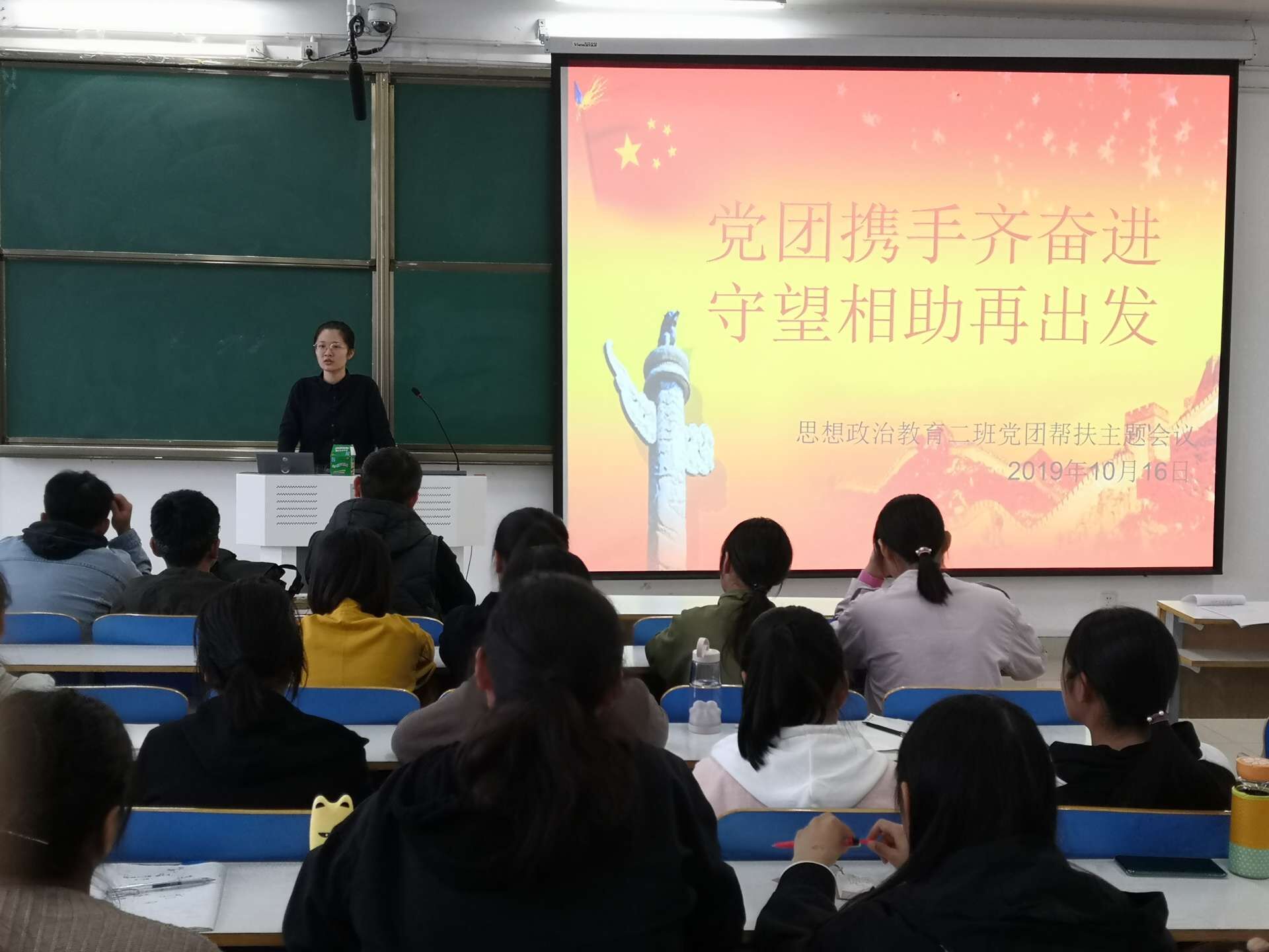 为提高2019级新生适应大学校园生活的能力,10月16日上午,小说狂人 2019级思想政治教育二班在社科楼514教室顺利开展党团帮扶班会。党团帮扶小组成员张雅琼、刘冰以及2019级思想政治教育二班全体同学共同参会。本次班会由团支书孙雅娴主持。