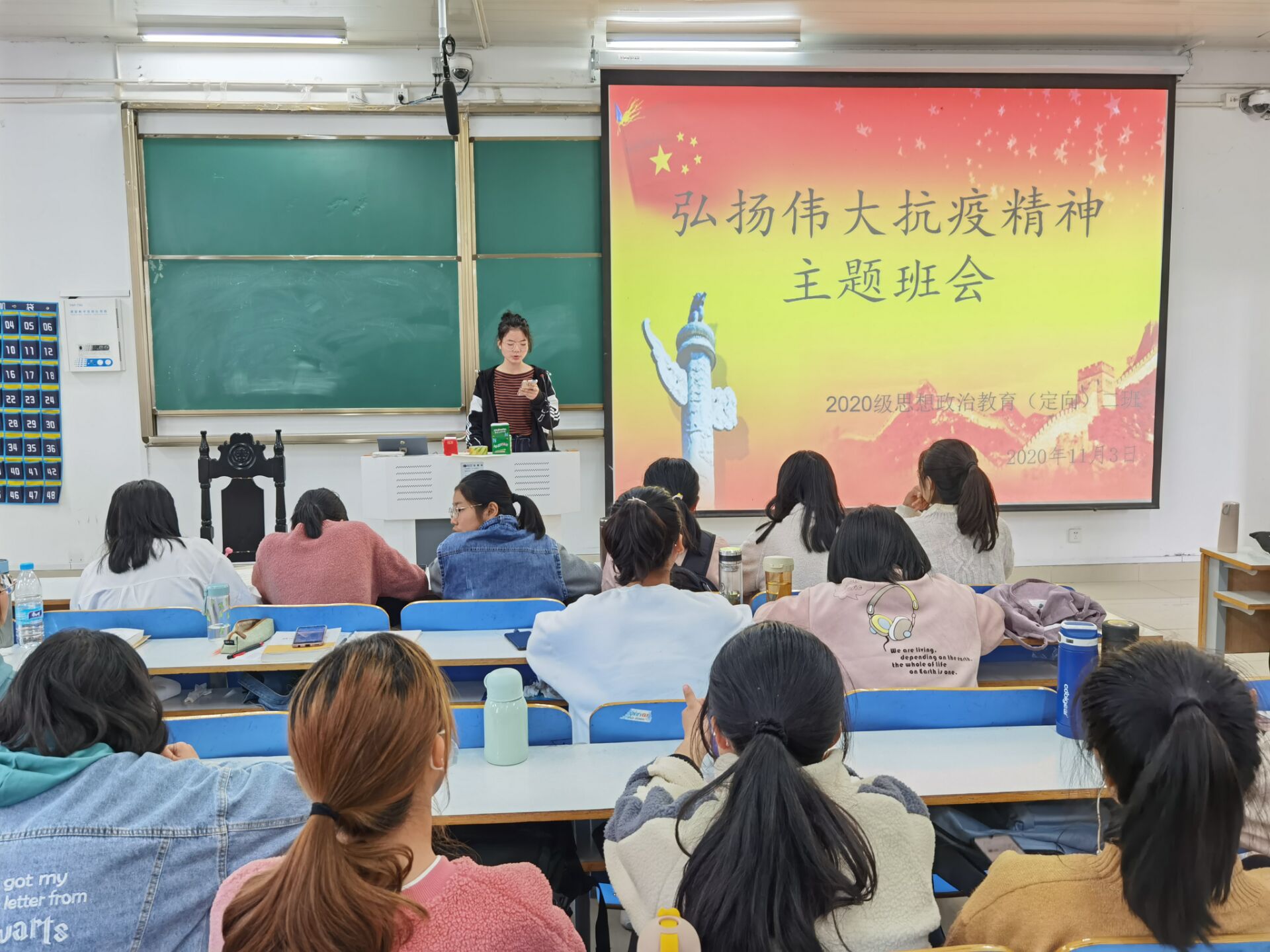为大力弘扬伟大抗疫精神、激发学生的爱国热情,11月3日上午,小说狂人 2020级思想政治教育定向二班在社科楼514教室召开了“弘扬伟大抗疫精神”主题班会。班会由团支书李晨曦主持。