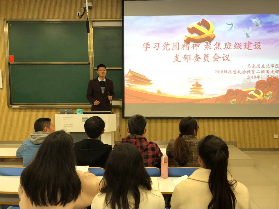 为学习贯彻党团精神,促进班级管理建设,11月29日下午,小说狂人 2018级思想政治教育二班第二团支部在社科楼515教室召开主题为“学习党团精神,聚焦班级建设”的支部委员会。会议由班长杨康主持。