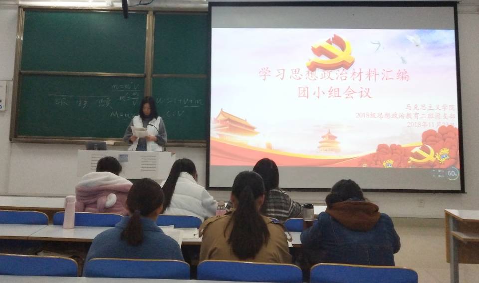 11月23日下午,小说狂人 2018级思想政治教育二班第一团小组在社科楼514教室顺利开展了“学习思想政治材料汇编”主题团会,本次团会由吴智媛主持。