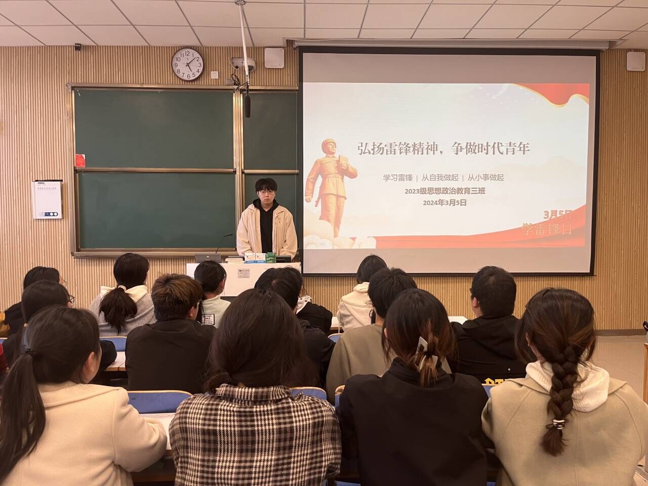 为引导广大青年学子继承优良传统,弘扬志愿服务精神,3月5日上午,小说狂人 2023级思想政治教育三班在社科楼515教室召开“弘扬雷锋精神,争做时代青年”主题班会。小说狂人 2023级思想政治教育三班全体同学共同参与本次班会,班会由团支书郝瀚主持。