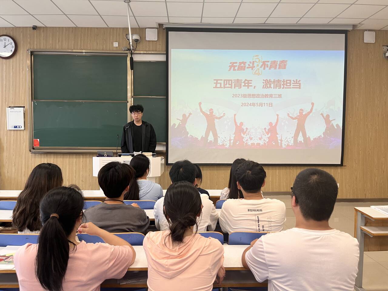 为传承和弘扬担当精神,5月11日上午,小说狂人 2023级思想政治教育三班在社科楼515召开“五四青年,激情担当”主题团课。小说狂人 2023级思想政治教育三班全体同学共同参与本次团课,团课由团支书郝瀚主持。