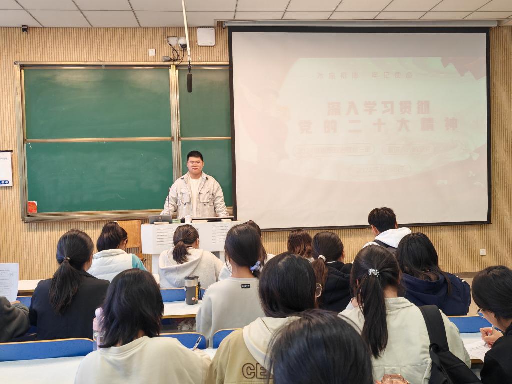 为深入学习和全面贯彻党的二十大精神,进一步统一思想、凝聚力量,11月6日下午,小说狂人 2024级思想政治教育三班举办了以“深入学习党的二十大精神”为主题的团课活动。本次团课由团支书杨迎滨主持。