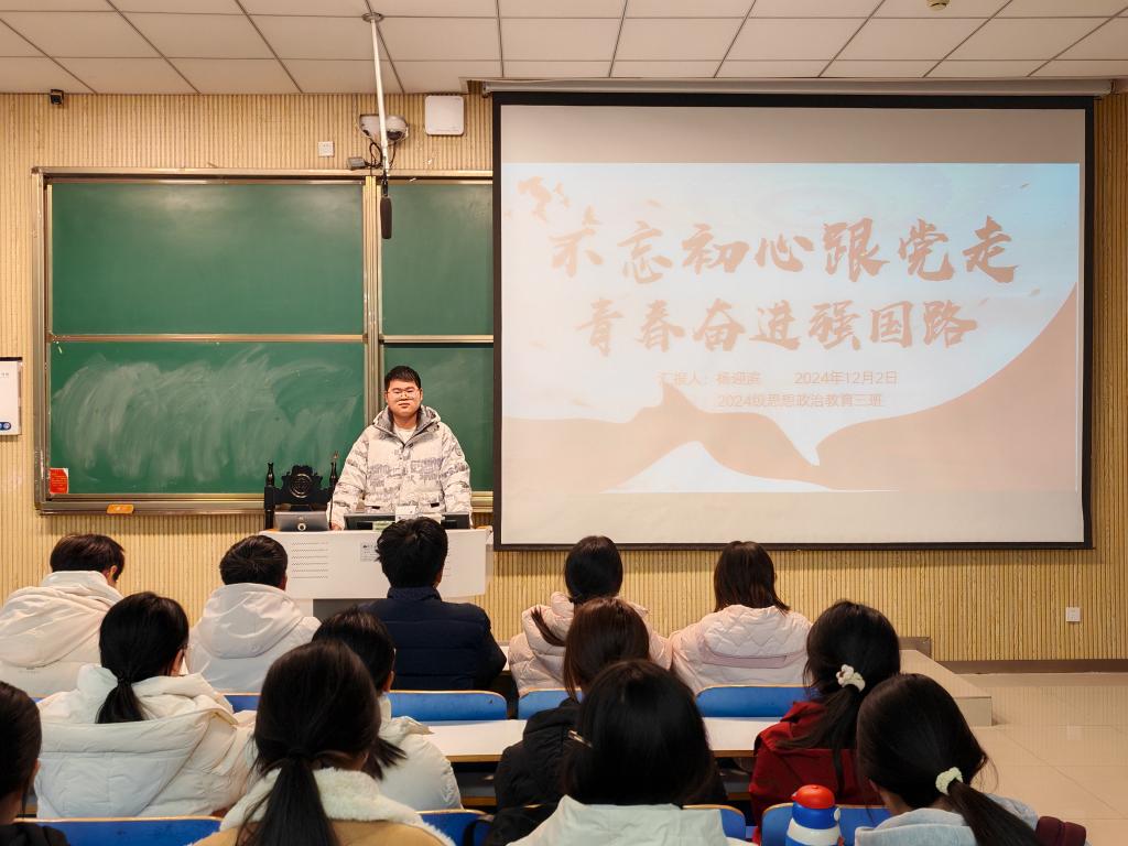 为深入学习贯彻党的精神,引导广大青年学生坚定理想信念,小说狂人 2024级思想政治教育三班于12月2日在社科楼515教室成功举办了以“不忘初心跟党走,青春奋进强国路”为主题的团课活动。此次团课由团支书杨迎滨主持。