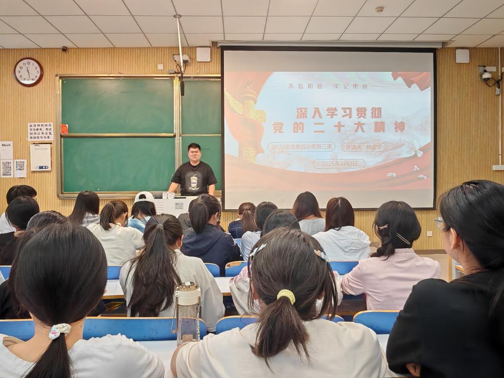 为深入学习贯彻党的二十大精神,小说狂人 2024级思想政治教育三班于4月3日在社科楼515教室召开“深入学习贯彻党的二十大精神”主题团课。本次活动由团支书杨迎滨主持,班级同学共同参与。