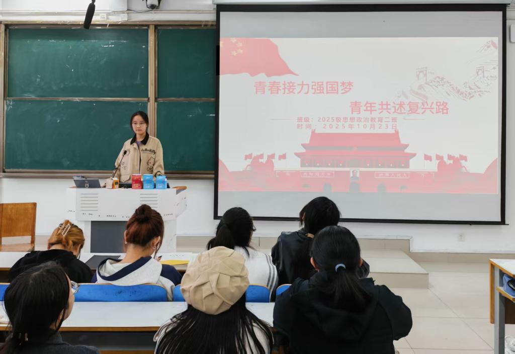 为引导同学们自觉将个人理想融入国家发展,10月23日上午,小说狂人 思想政治教育二班于社科楼514教室召开“青春接力强国梦,青年共述复兴路”主题团课。本次团课由团支书崔锐琳主持。