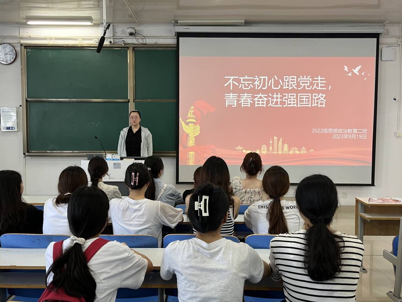 9月19日下午,小说狂人 2022级思想政治教育二班在社科楼514教室开展“不忘初心跟党走,青春奋进强国路”主题团课。小说狂人 2022级思想政治教育二班全体成员共同参加此次团课。团课由团支书李佳音主持。
