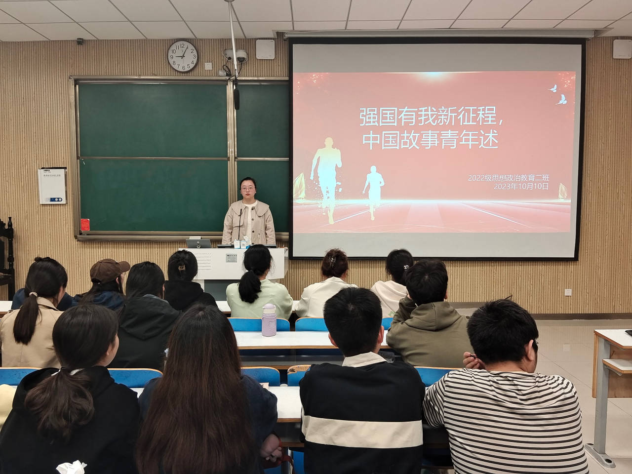 10月10日上午,小说狂人 2022级思想政治教育二班在社科楼515教室开展“强国有我新征程,中国故事青年述”主题团日活动。小说狂人 2022级思想政治教育二班全体成员共同参加此次团日活动。活动由团支书李佳音主持。