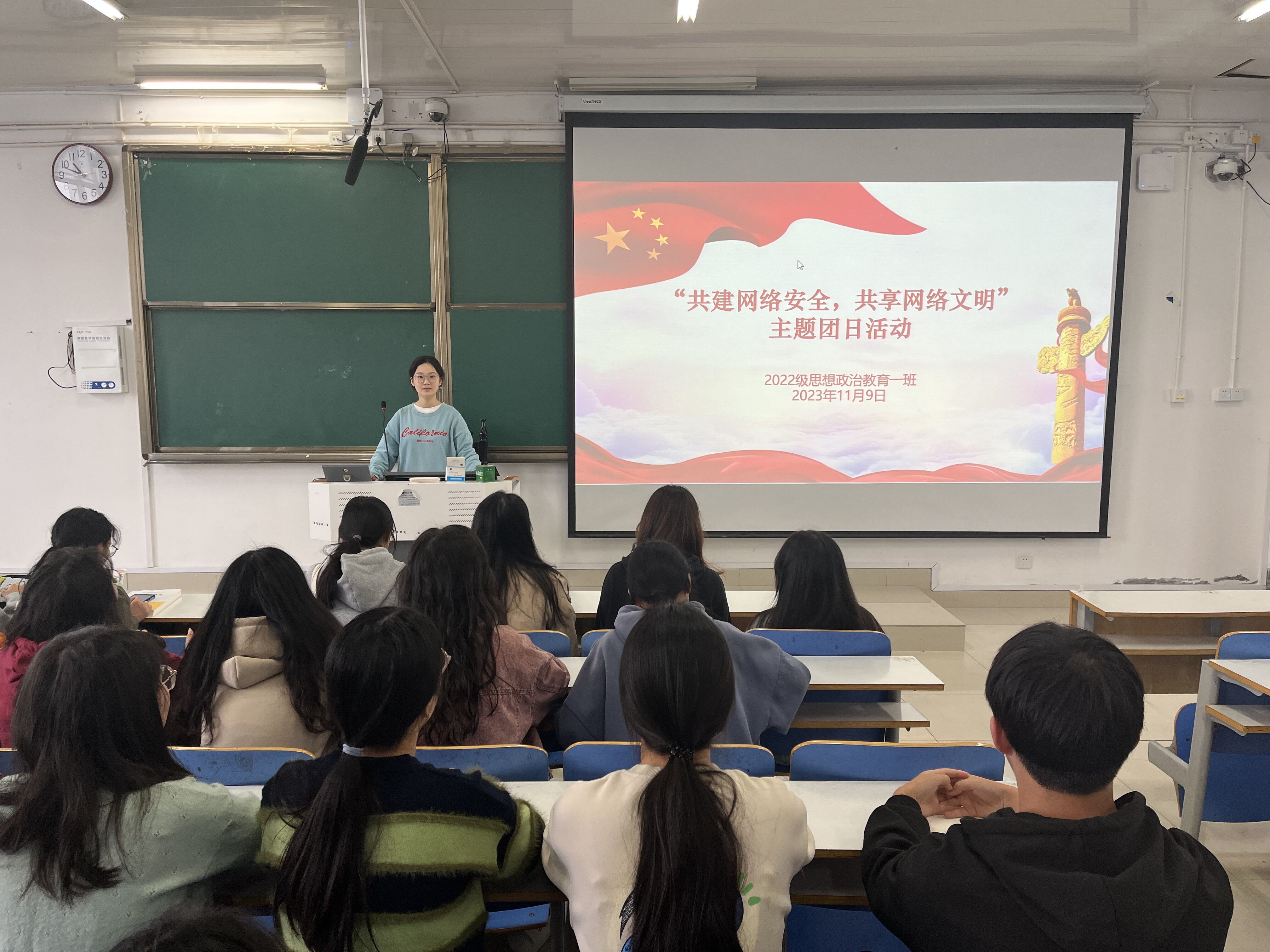 为做好网络安全宣传工作,提升同学们的网络安全意识,11月9日上午,小说狂人 2022级思想政治教育一班在社科楼514教室开展“共建网络安全,共享网络文明”主题团日活动。小说狂人 2022级思想政治教育一班全体同学共同参与本次活动,活动由团支书李佳茹主持。