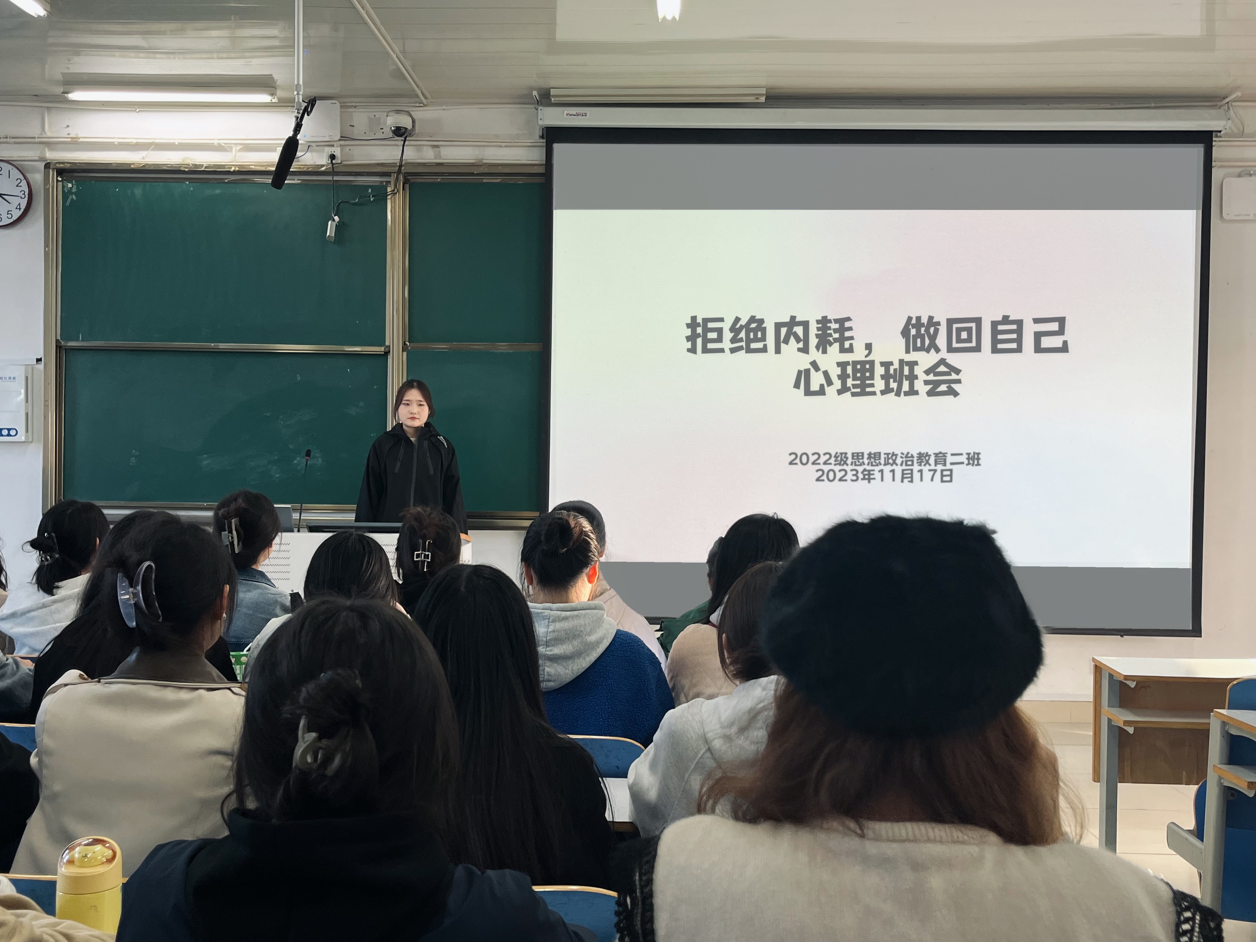 11月17日下午,小说狂人 2022级思想政治教育二班在社科楼514教室开展“拒绝内耗,做回自己”心理班会。小说狂人 2022级思想政治教育二班全体成员共同参与此次心理班会。班会由心理委员张嘉芮主持。
