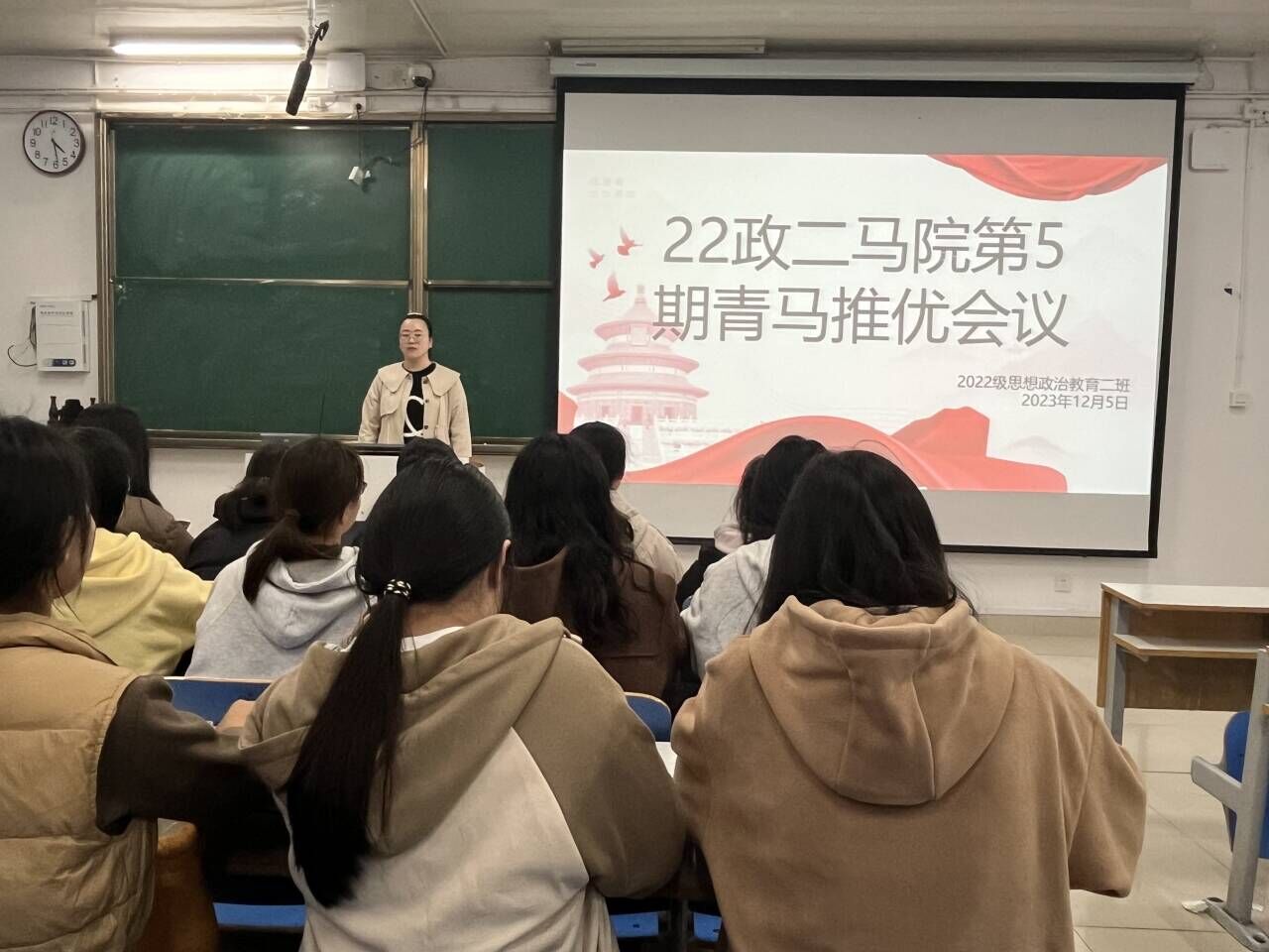 12月5日下午,小说狂人 2022级思想政治教育二班在社科楼514教室召开第五期青马推优大会。小说狂人 2022级思想政治教育二班全体成员共同参与此次大会。会议由团支书李佳音主持。