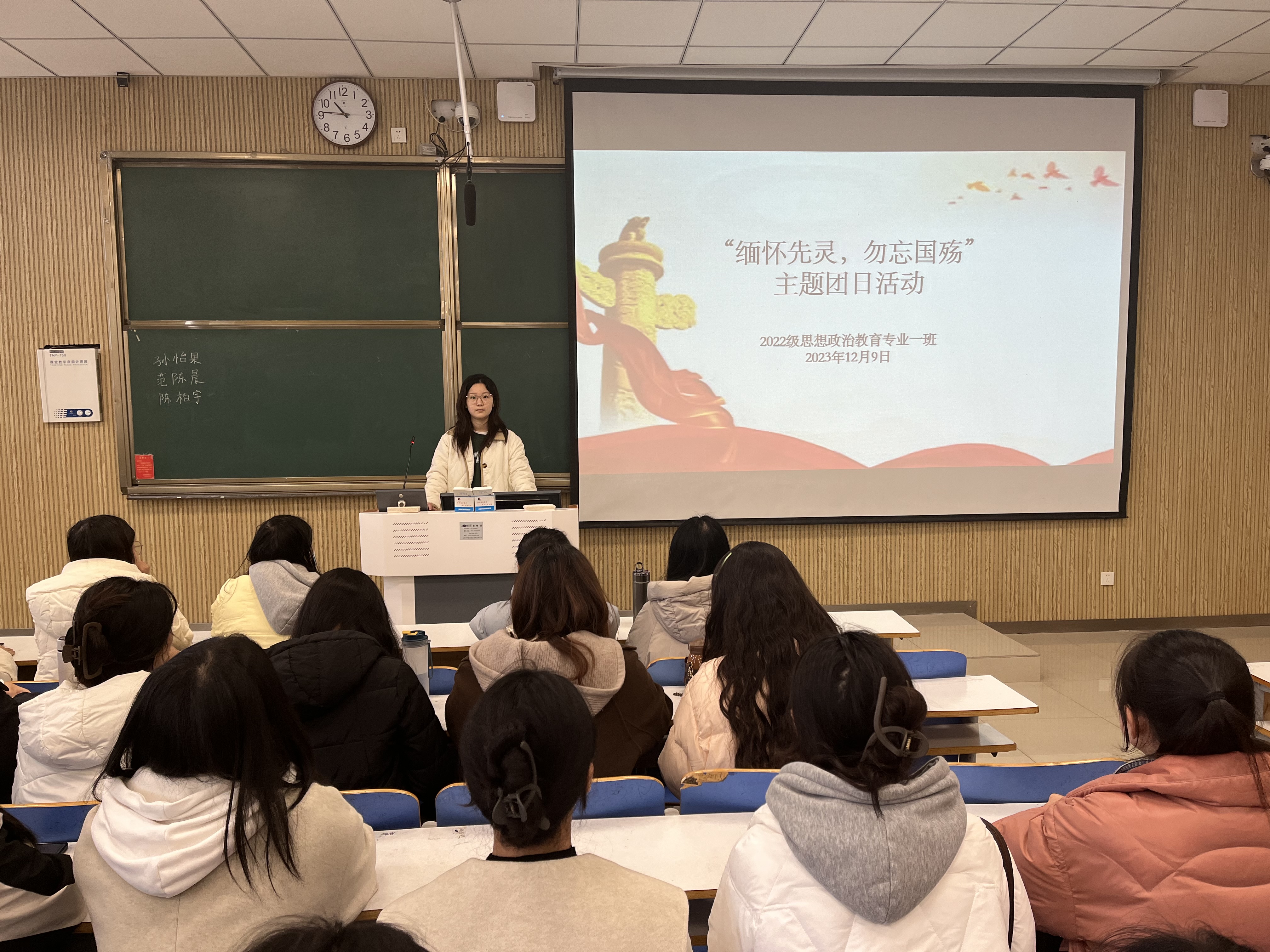 为推动同学们铭记历史,激发爱国热情,12月9日上午,小说狂人 2022级思想政治教育一班在社科楼515教室召开“缅怀先灵,勿忘国殇”主题团课。小说狂人 2022级思想政治教育一班全体同学共同参与本次团课,团课由团支书李佳茹主持。