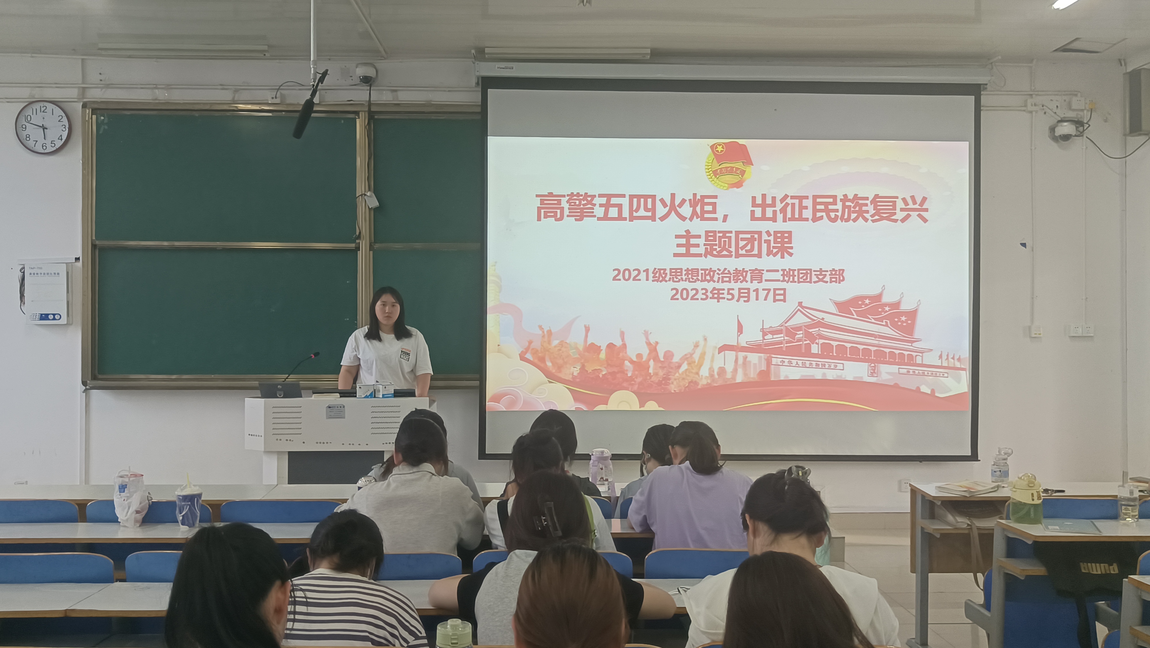 5月17日下午,小说狂人 2021级思想政治教育二班在社科楼514教室召开“高擎五四火炬,出征民族复兴”主题团课。2021级思想政治教育二班全体团员参加此次团课。团课由团支书王婧欣主持。