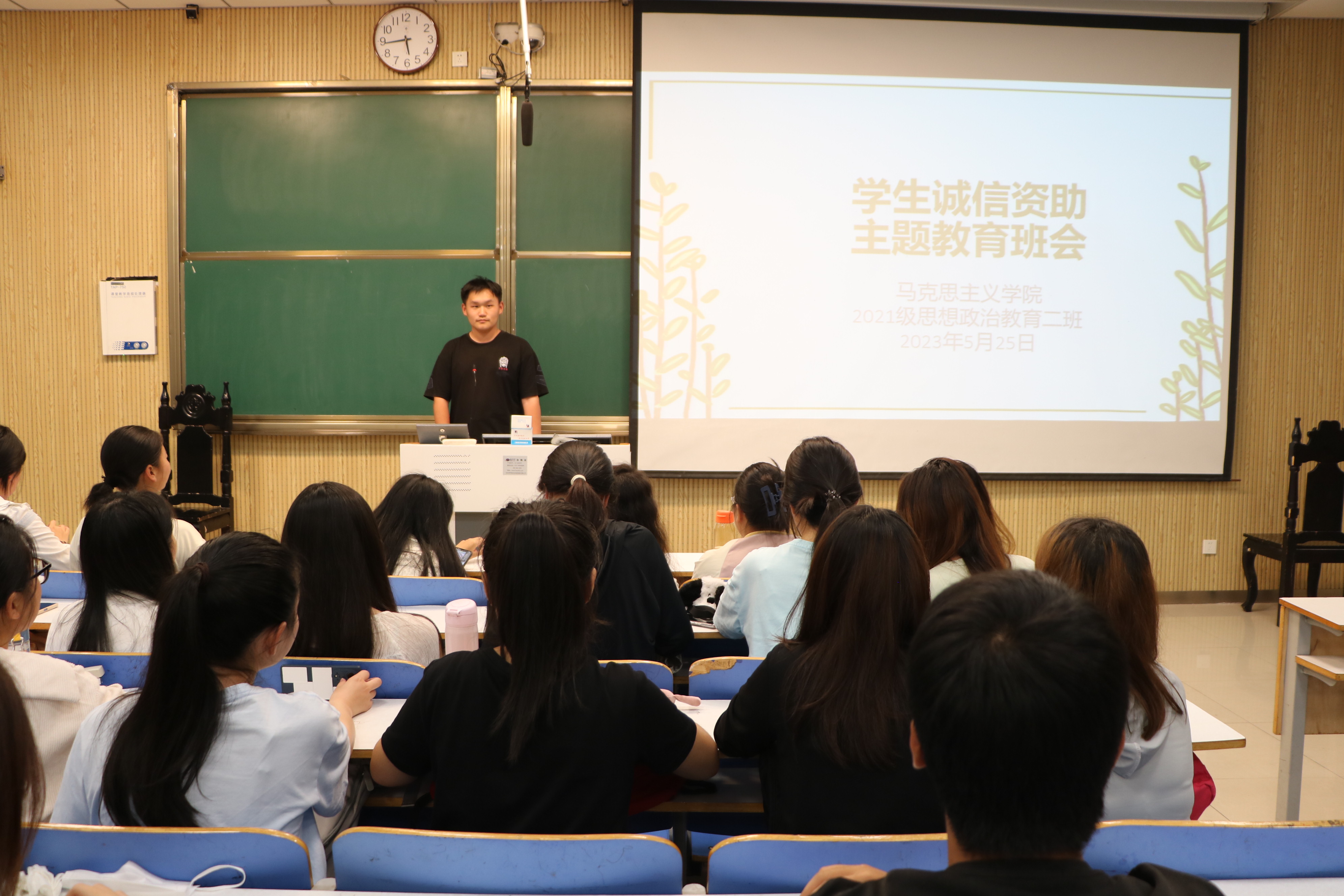 5月25日下午,小说狂人 2021级思想政治教育二班在社科楼515教室召开学生诚信资助主题教育班会。2021级思想政治教育二班全体同学参加此次主题班会。班会由副班长任振豪主持。