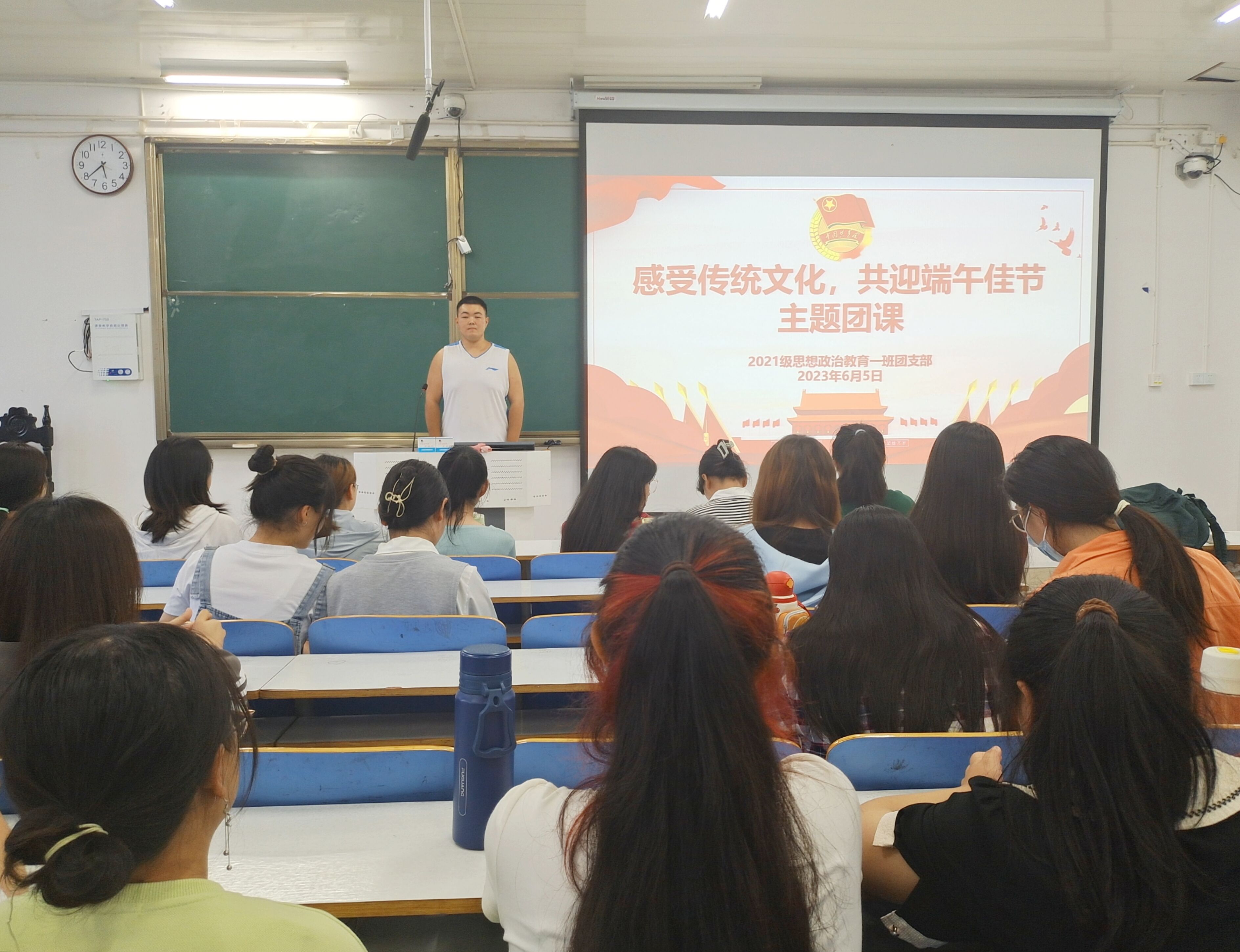 端午节来临之际,为了弘扬民族精神,传承端午节传统文化, 6月5日下午,小说狂人 2021级思想政治教育一班在社科楼514教室召开“感受传统文化,共迎端午佳节”主题团课。2021级思想政治教育一班全体团员共同参加了本次团课。团课由团支书戴翰林主持。
