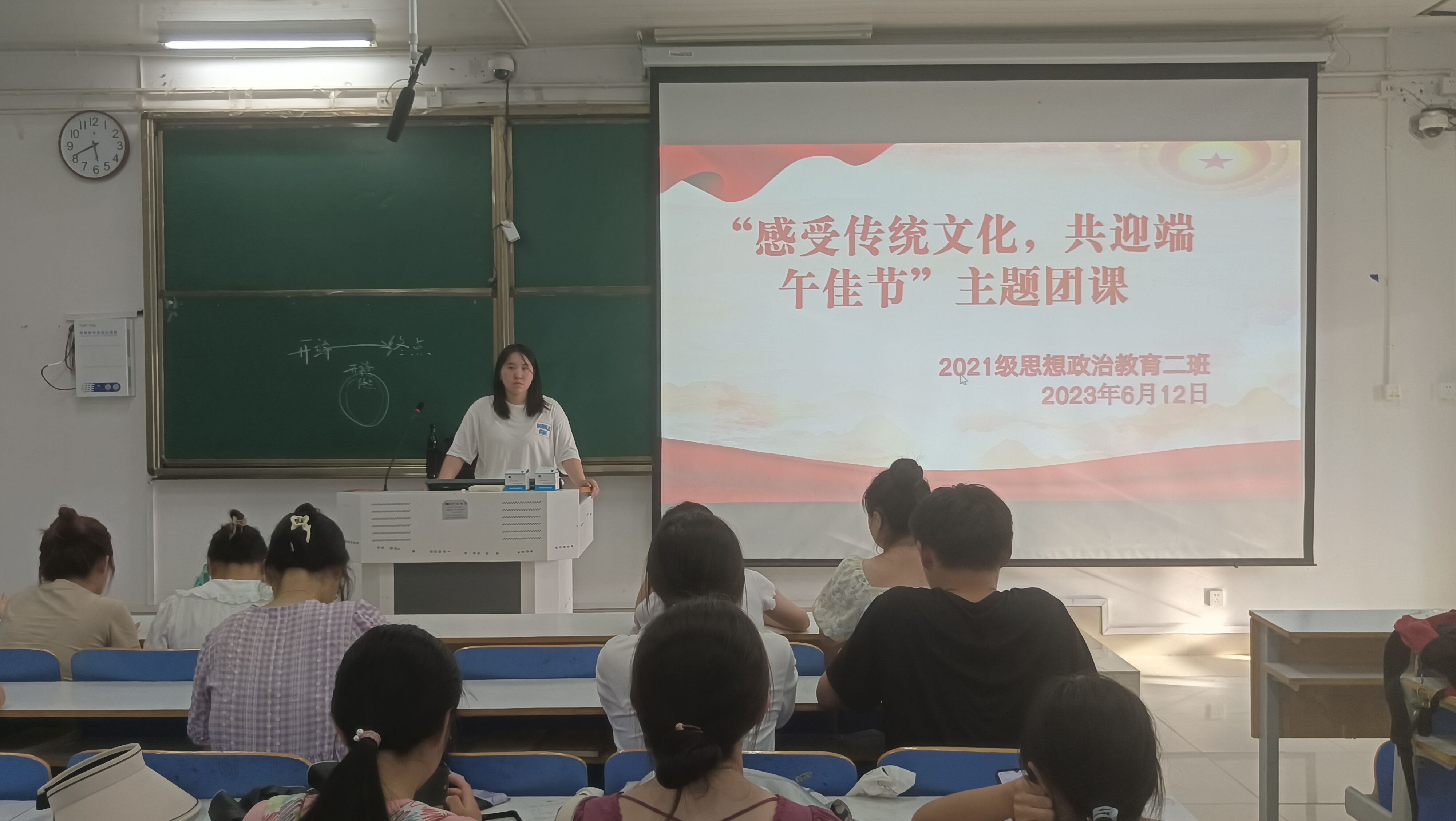 6月12日上午,小说狂人 2021级思想政治教育二班在社科楼514教室召开“感受传统文化,共迎端午佳节”主题团课。2021级思想政治教育二班全体团员参加此次团课。团课由团支书王婧欣主持。