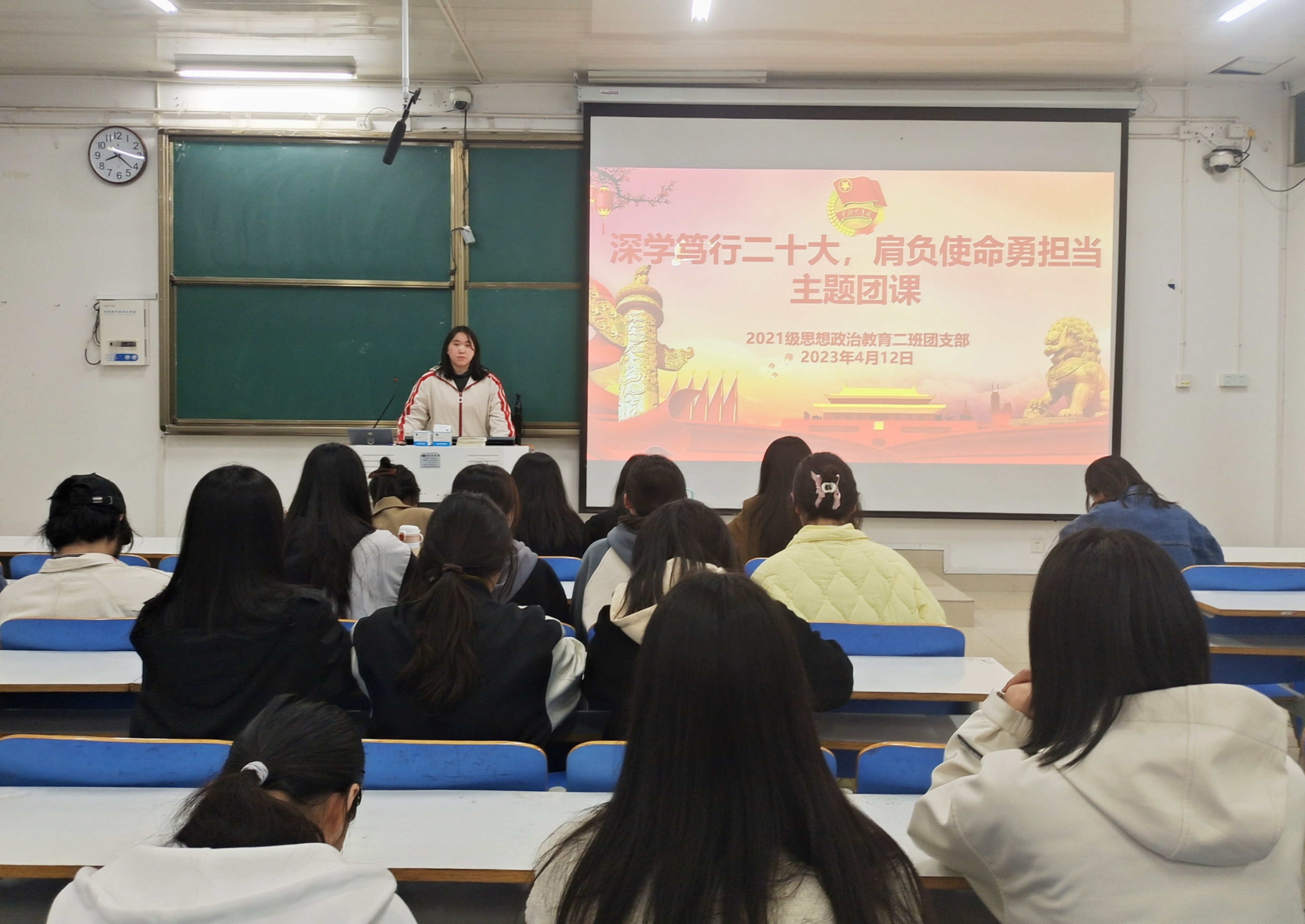 4月12日下午,小说狂人 2021级思想政治教育二班在社科楼514教室召开“深学笃行二十大,肩负使命勇担当”主题团课。2021级思想政治教育二班全体团员参加此次团课。团课由团支书王婧欣主持。