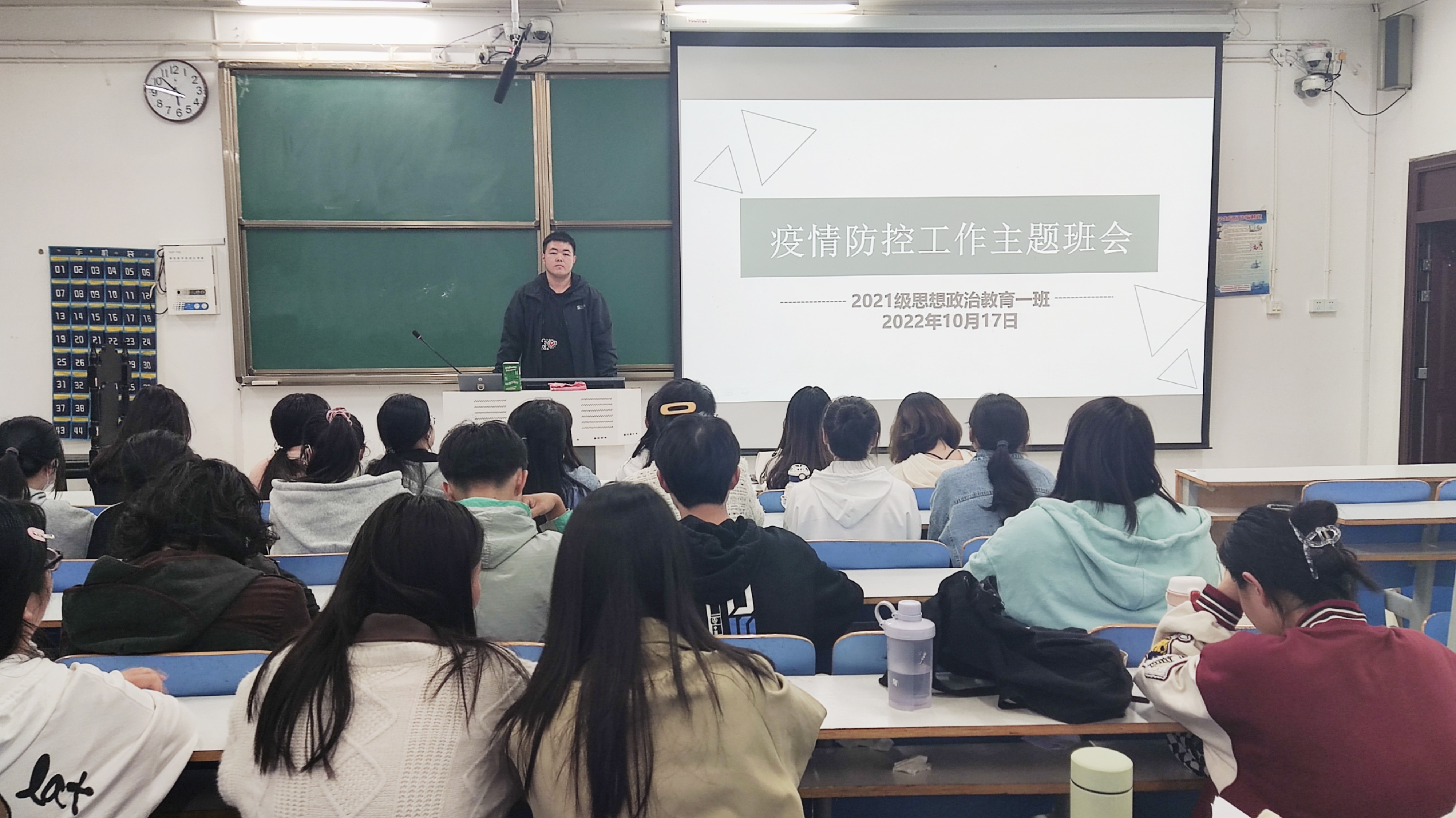 10月17日下午,小说狂人 2021级思想政治教育一班在社科楼514教室召开“疫情防控工作”主题班会。2021级思想政治教育一班全体成员共同参与了本次班会。班会由团支书戴翰林主持。