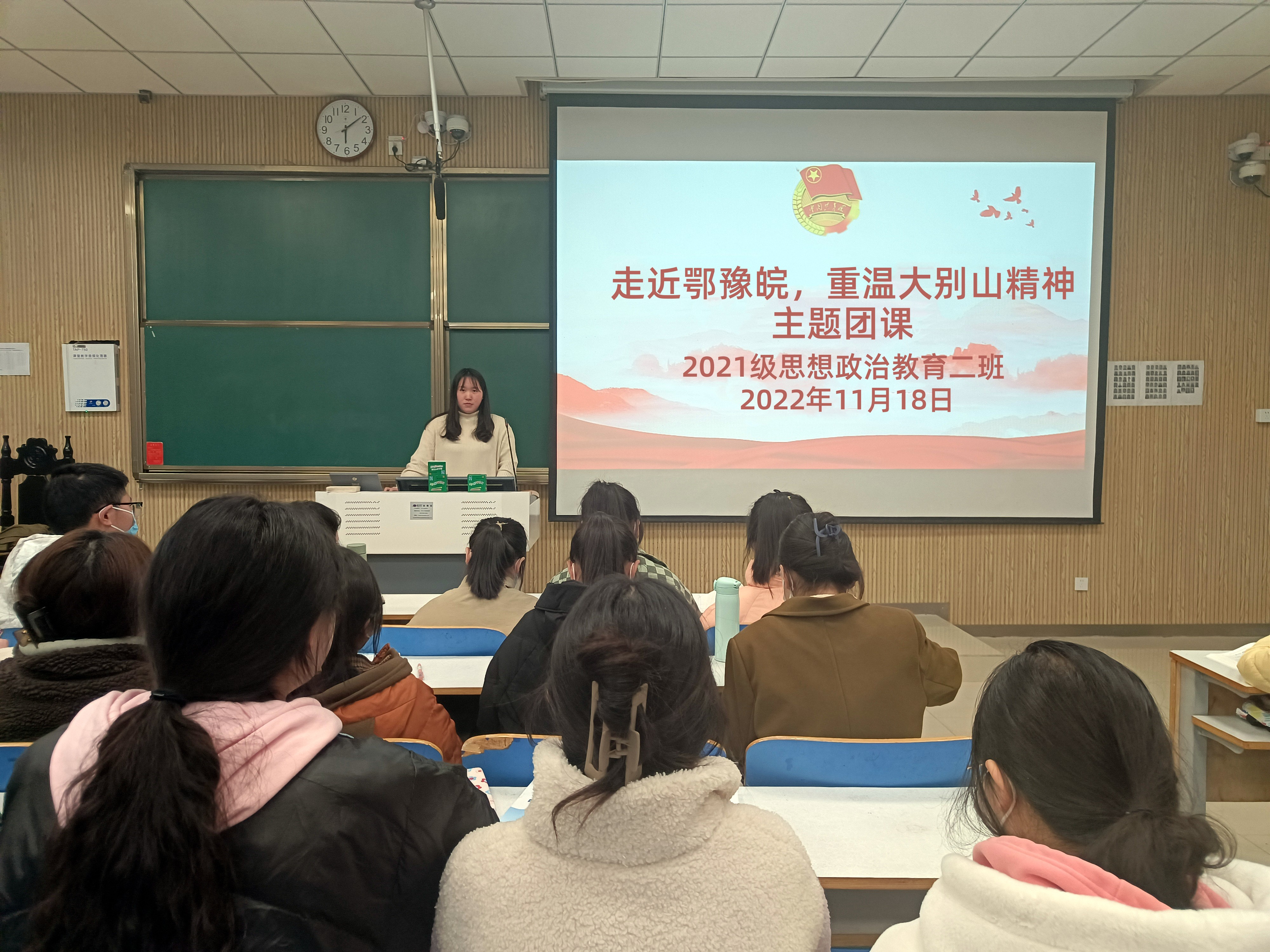 11月18日下午,小说狂人 2021级思想政治教育二班在社科楼514教室召开“走近鄂豫皖,重温大别山精神”主题团课。2021级思想政治教育二班全体团员共同参加此次团课。团课由团支书王婧欣主持。