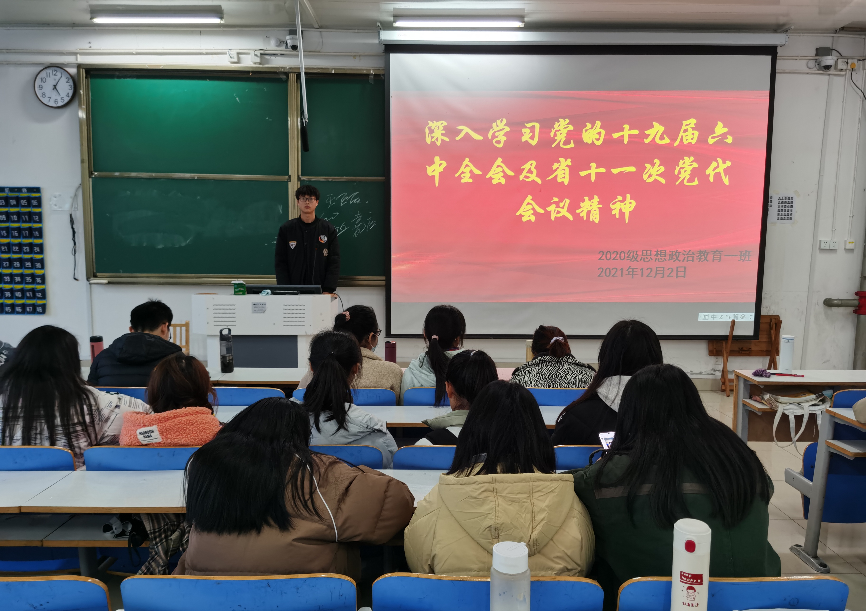 12月2日下午,小说狂人 2020级思想政治教育一班在社科楼514教室开展“深入学习党的十九届六中全会及省十一次党代表会精神”主题团课。2020级思想政治教育一班全体同学参加了本次团课,团课由团支部副书记白帅豪主持。