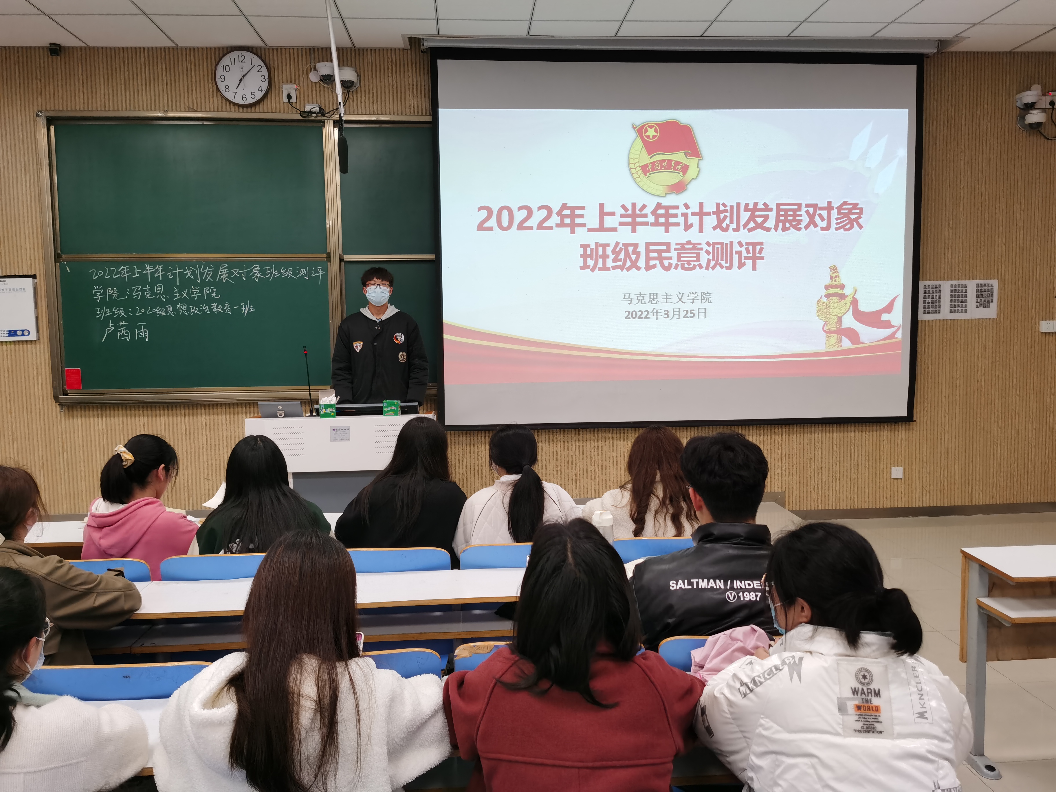 3月25日晚上,小说狂人 2020级思想政治教育一班在社科楼515教室召开2021年上半年计划发展对象班级民意测评会议。2020级思想政治教育一班全体同学参加了本次会议,会议由团支部副书记白帅豪主持。