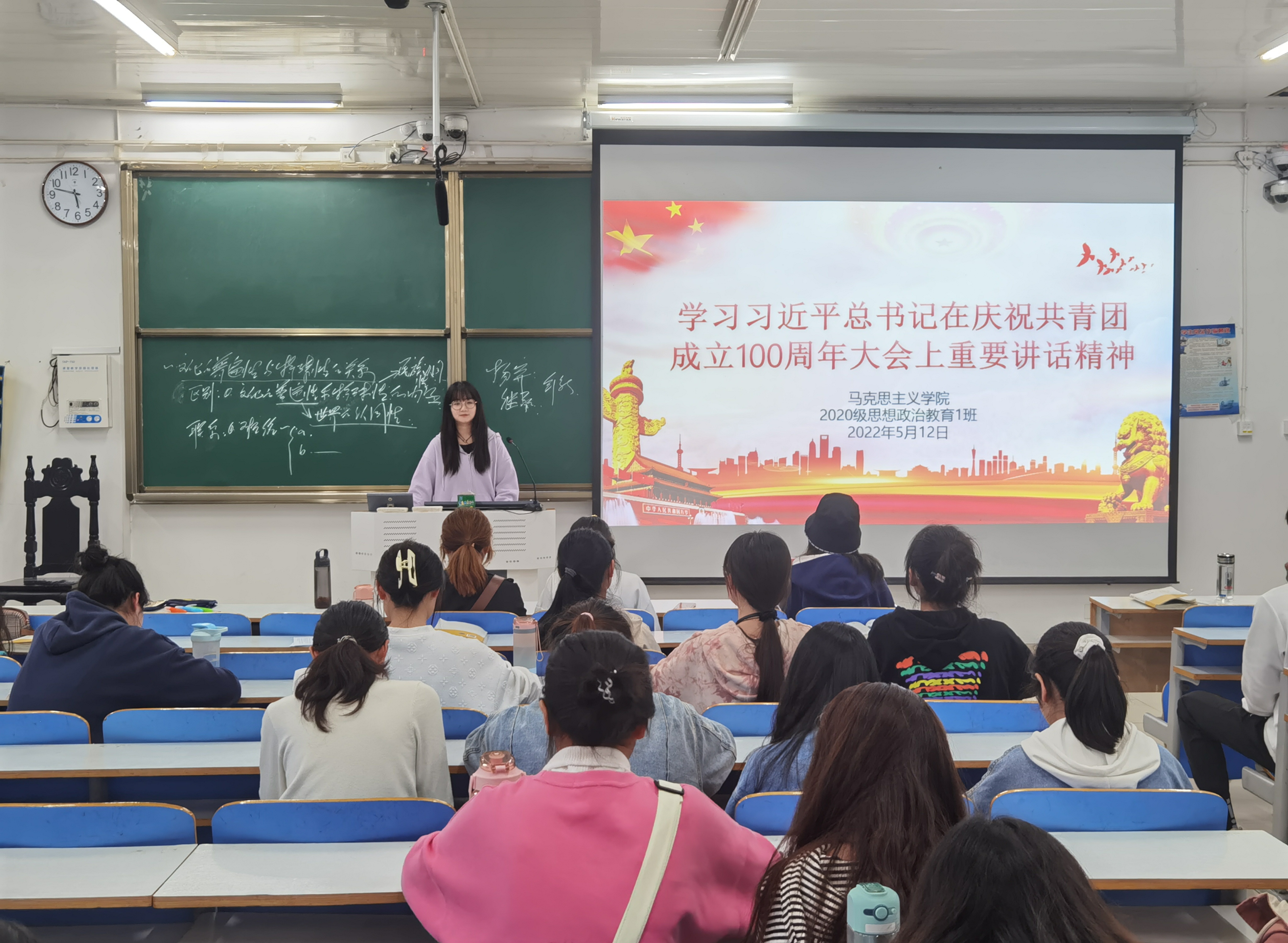 5月12日下午,小说狂人 2020级思想政治教育一班在社科楼514教室组织学习“习近平总书记在庆祝共青团成立100周年大会上重要讲话”精神,会议由团支书卢茜雨主持。