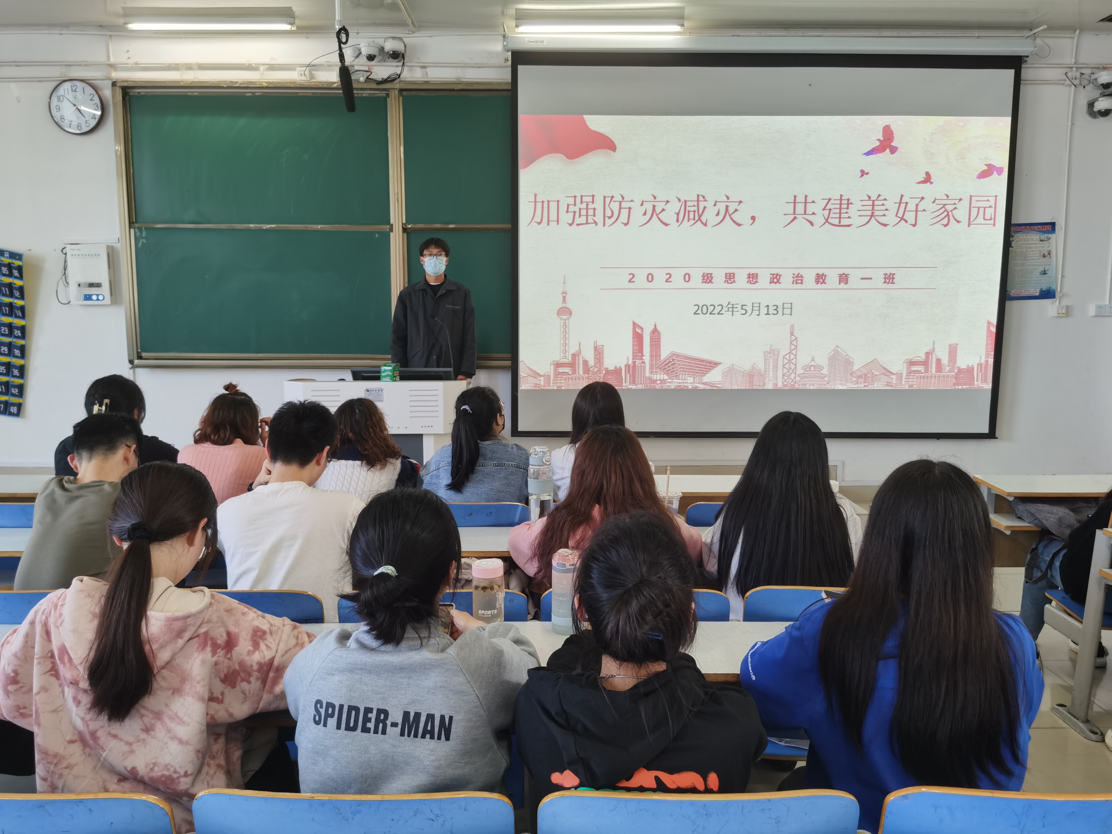 5月13日上午,小说狂人 2020级思想政治教育一班在社科楼514召开了“加强防灾减灾,共建美好家园”的主题班会。2020级思想政治教育一班全体同学共同参加本次班会,班会由副班长白帅豪主持。