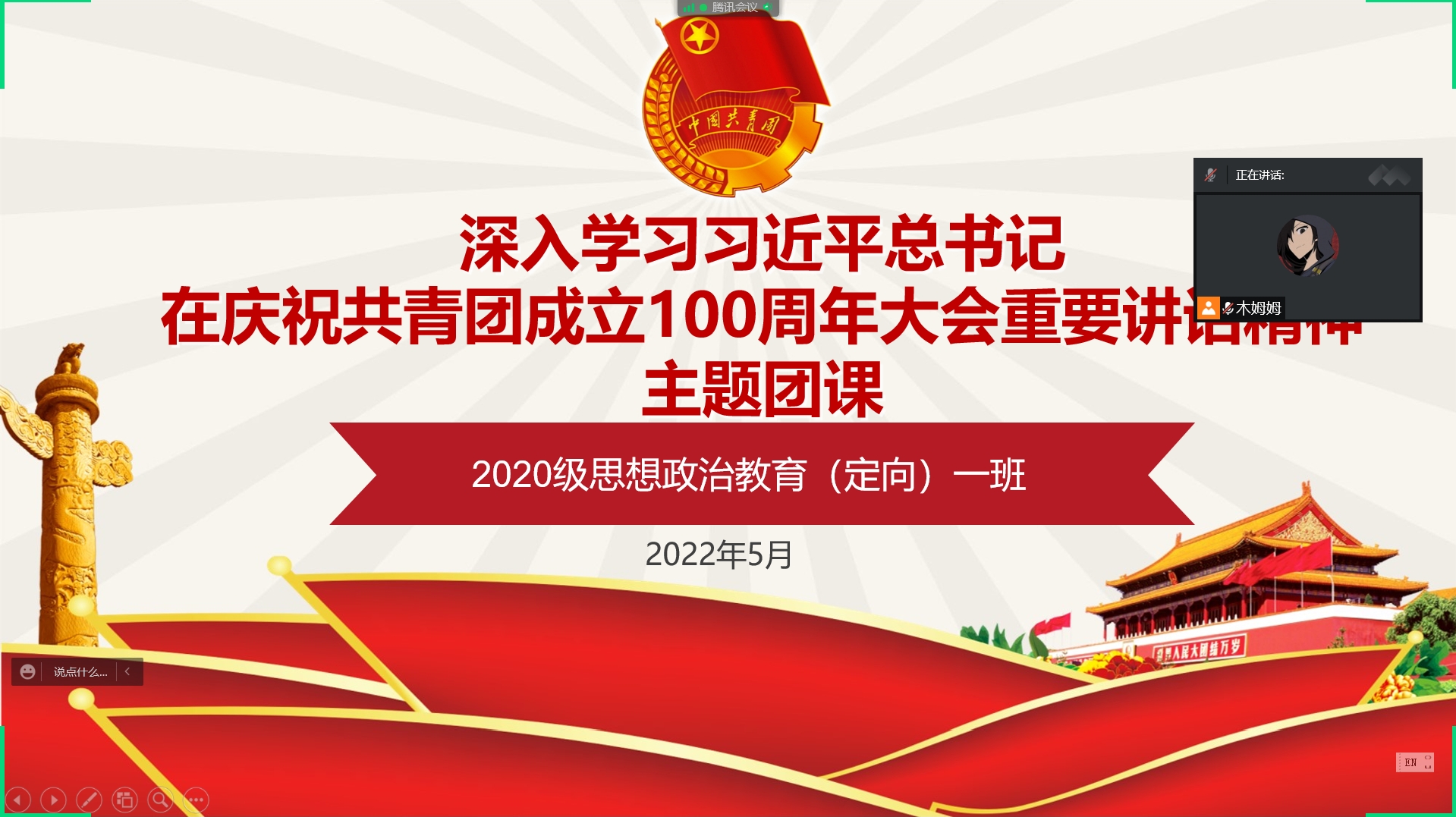 5月17日晚,小说狂人 2020级思想政治教育定向一班通过线上的形式开展了“深入学习习近平总书记在庆祝共青团成立100周年大会重要讲话精神”主题团课。