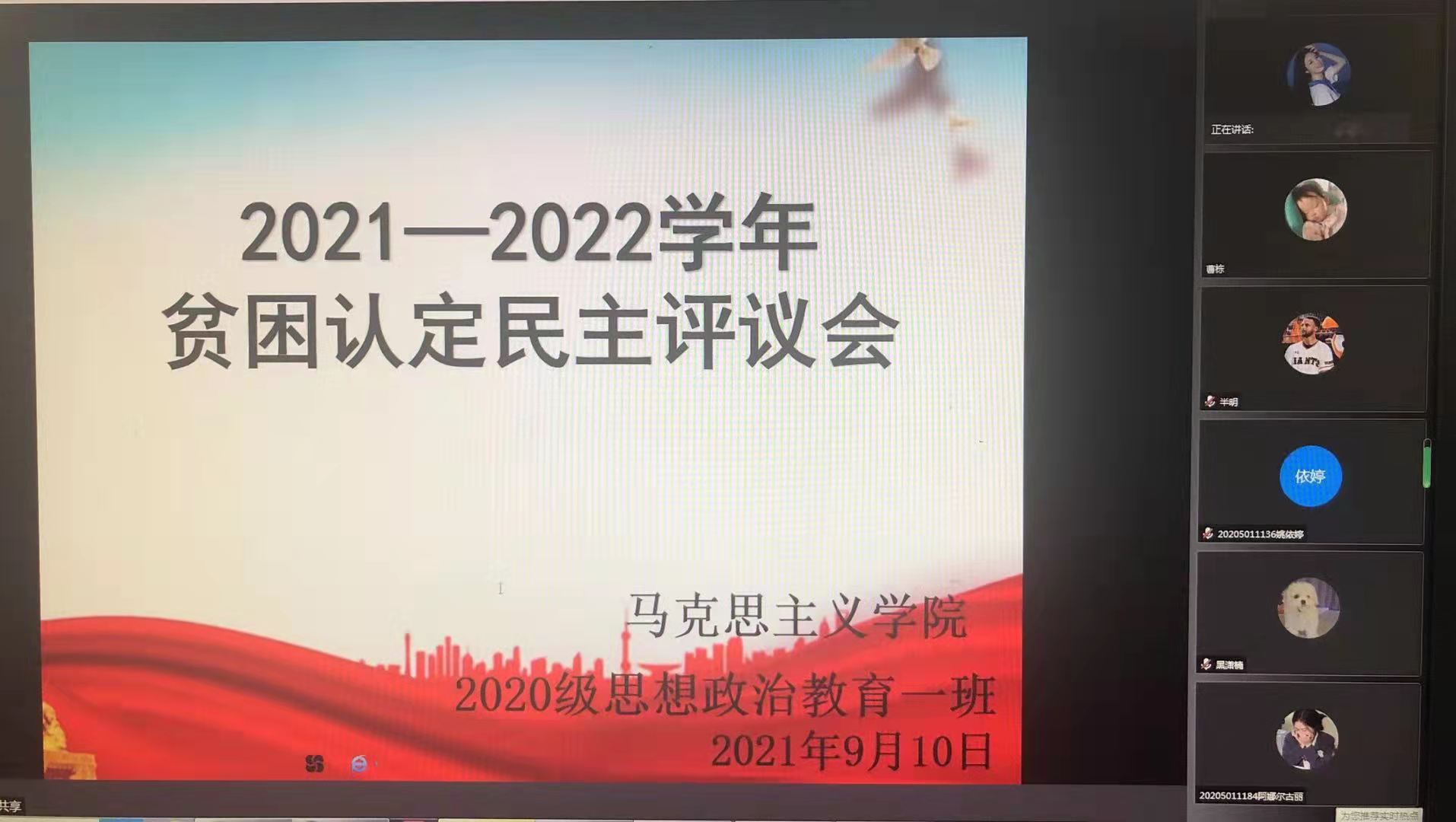 9月10日上午,小说狂人 2020级思想政治教育一班通过腾讯会议线上平台顺利开展2021—2022学年贫困认定民主评议会。辅导员曹栋、评议小组成员、申请人以及监督人员参与了本次会议,本次会议由团支书卢茜雨主持。
