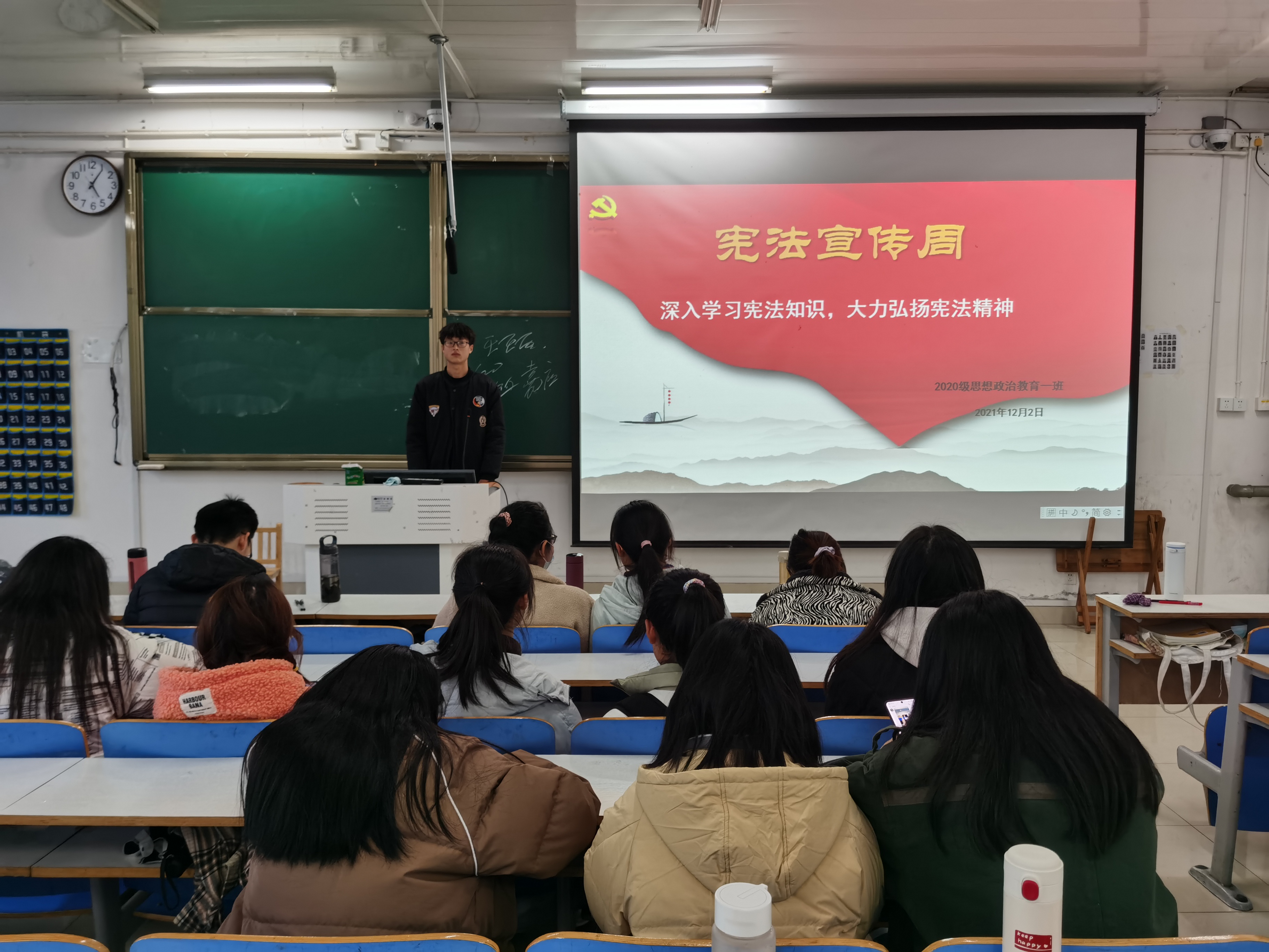 为增强同学们的法治观念,培养法治思维,12月2日下午,小说狂人 2020级思想政治教育一班在社科楼516教室召开“深入学习宪法知识,大力弘扬宪法精神”主题班会。